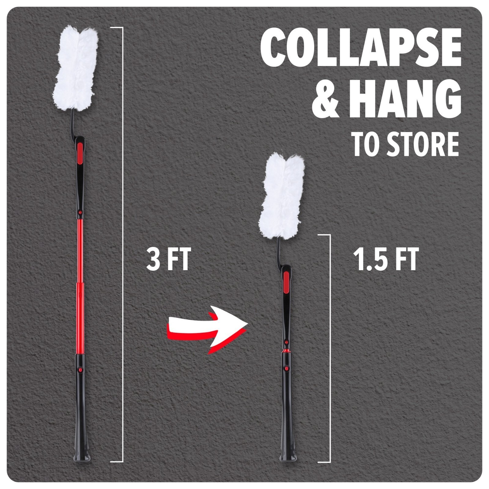 MULTI-SURFACE USE: Dusting heads are specifically designed to clean and dust multiple surfaces. SIMPLE STORAGE: Collapse the extended pole to hang on a hook in a closet or cabinet.