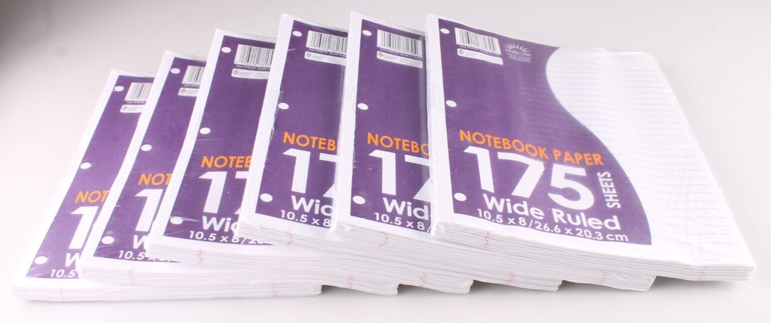 6 Pack of Norcom Notebook paper, wide ruled, 175 sheets - Back To School