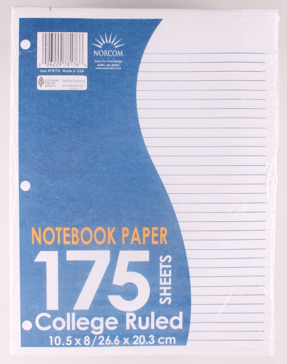 6 Pack of Norcom Notebook paper, college ruled, 175 sheets - Back To School