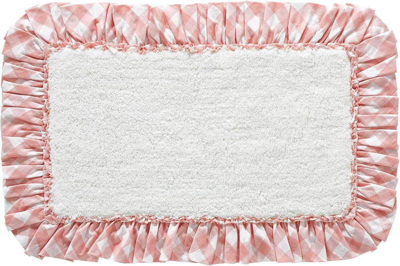 Annie Buffalo Check Farmhouse 20"X30" Bathmat Pink Ruched Ruffle Cot