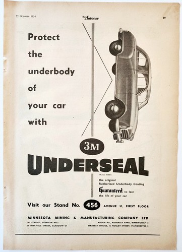 1954 3M Underseal Earls Court Motor Show Advertisement Automobilia DWPP11