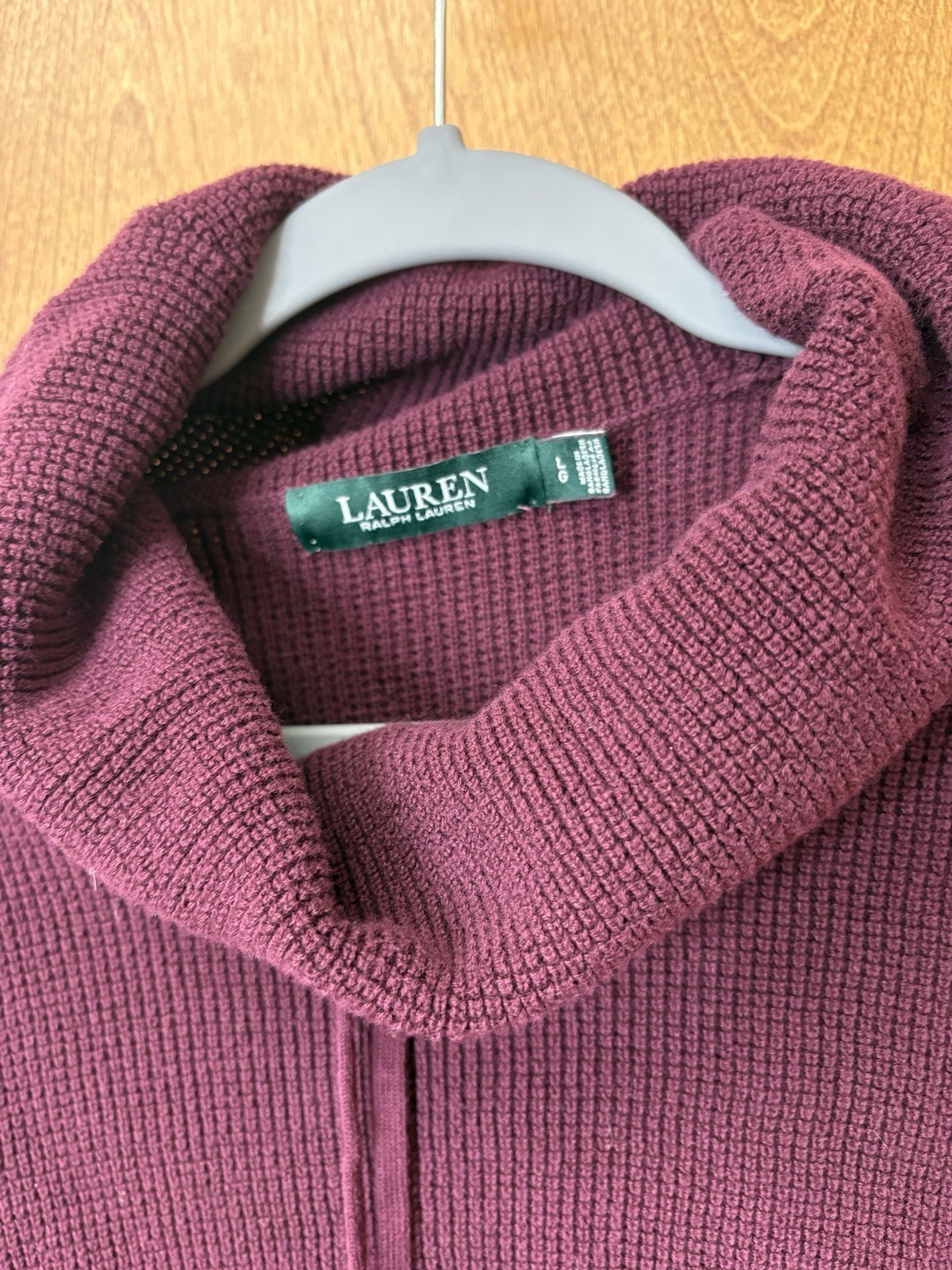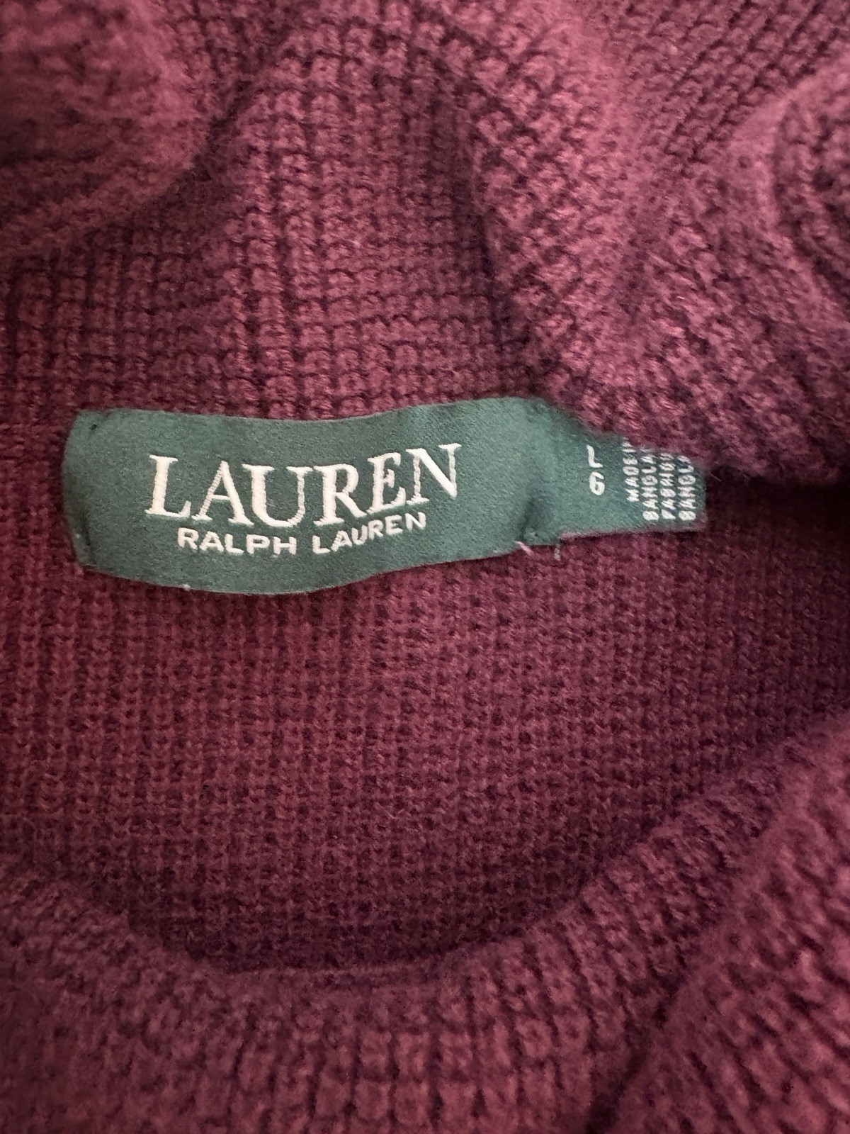 Lauren Ralph Lauren Womens Waffle Knit Sweater Sz Lg Cabincore Old Money Maroon