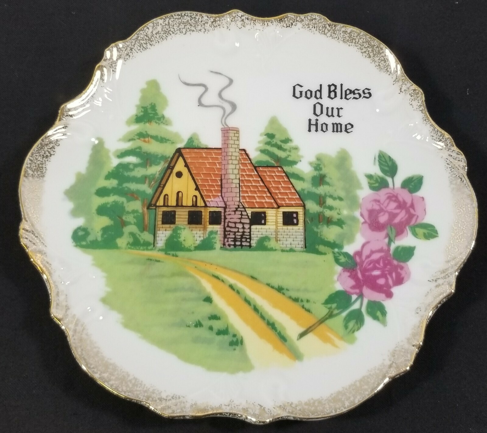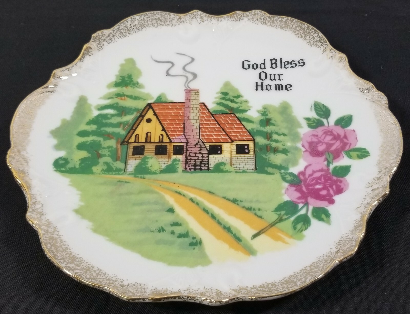 Vintage "God Bless Our Home" Decorative Plate Wall Hanger