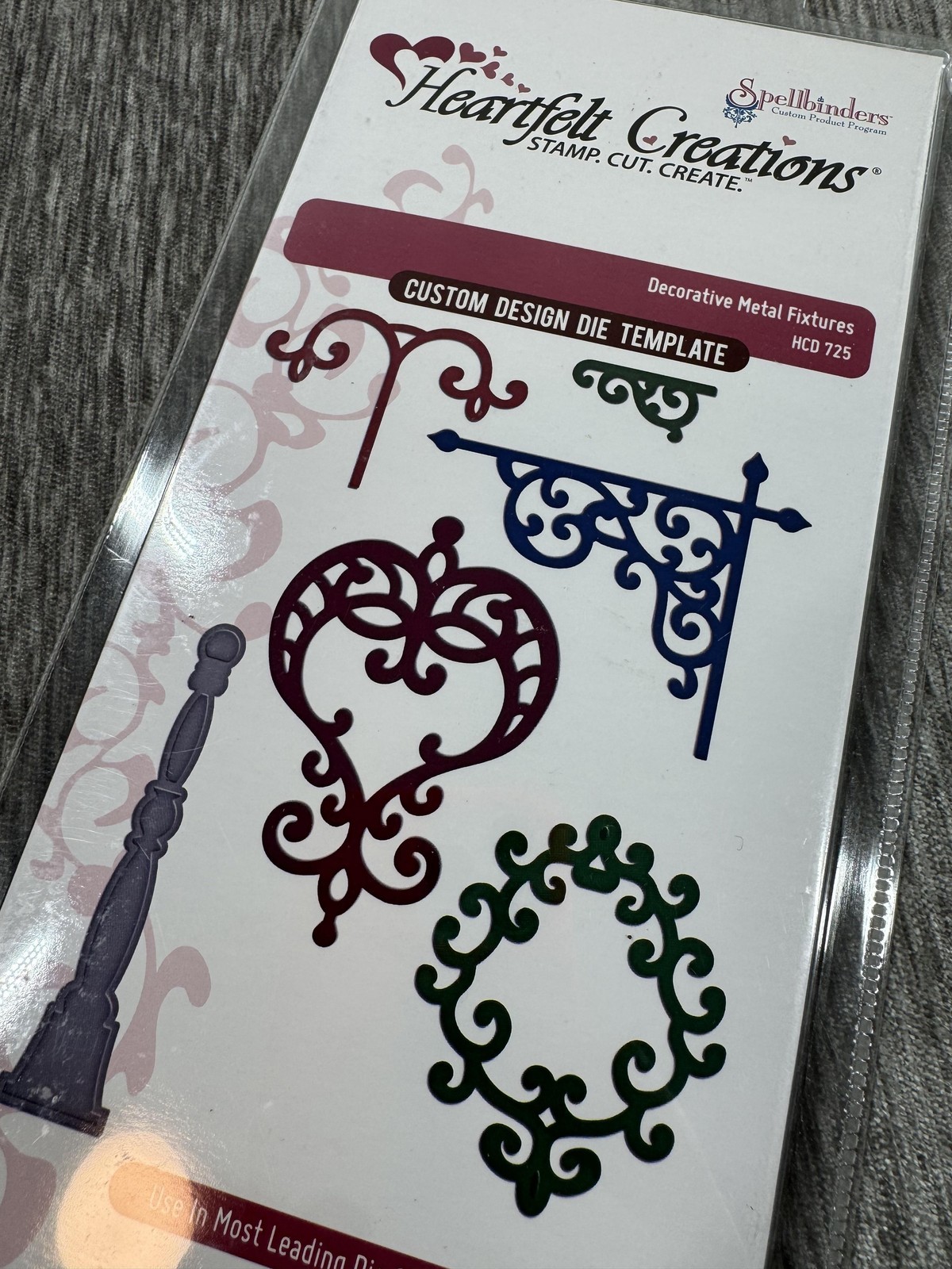 Collection notes: Front packaging shows "Heartfelt Creations ? Stamp. Cut. Create." and "Spellbinders" branding