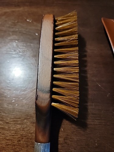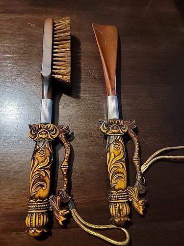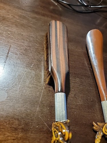 The shoe horn and brush are designed for adult unisex shoes and are an original item. They are not modified and have been well-maintained over the years. This set is a great addition to any vintage accessories collection and is sure to impress.