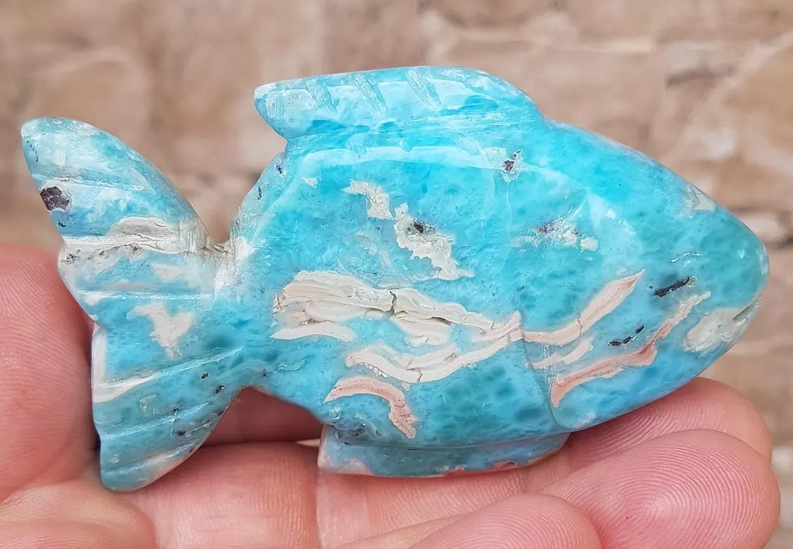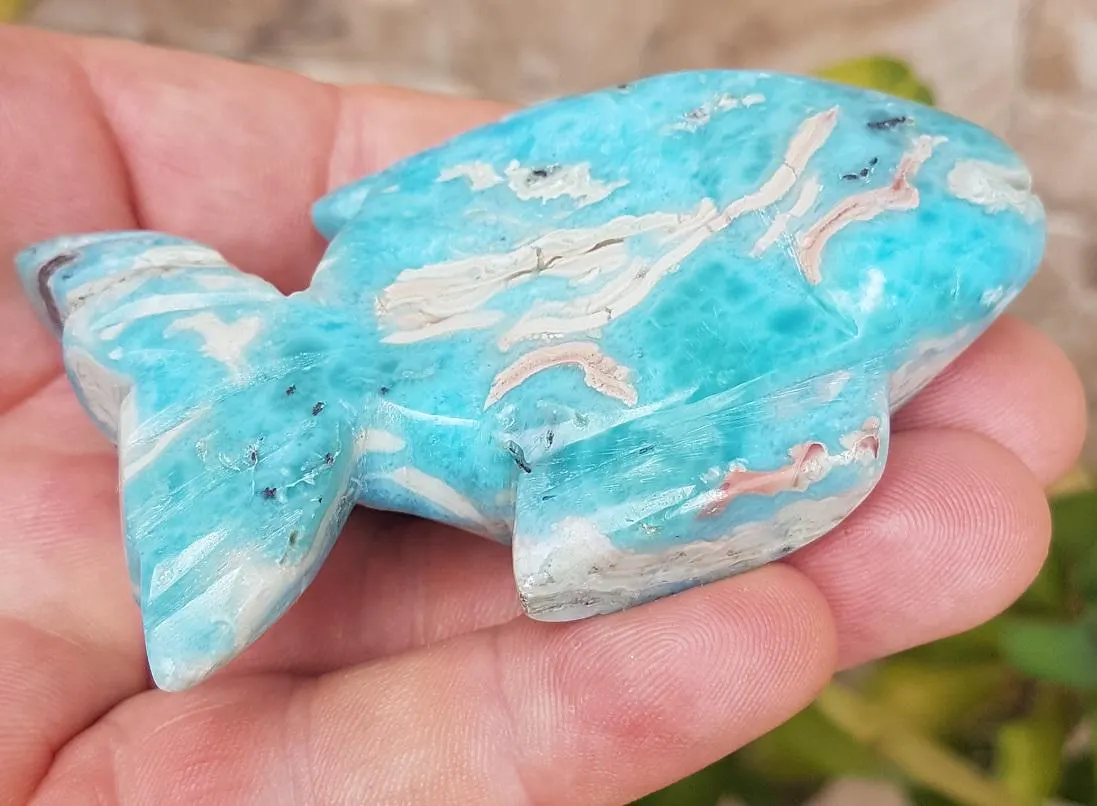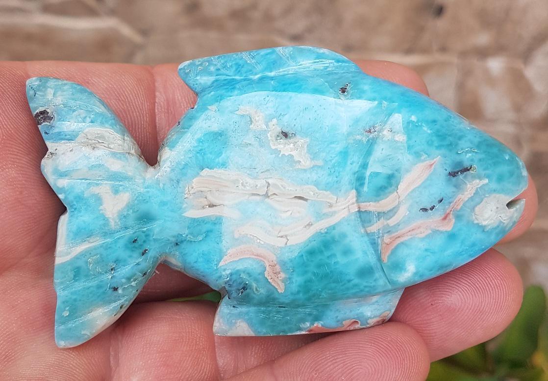 NATURAL blue larimar handcarved FISH and 28 similar items