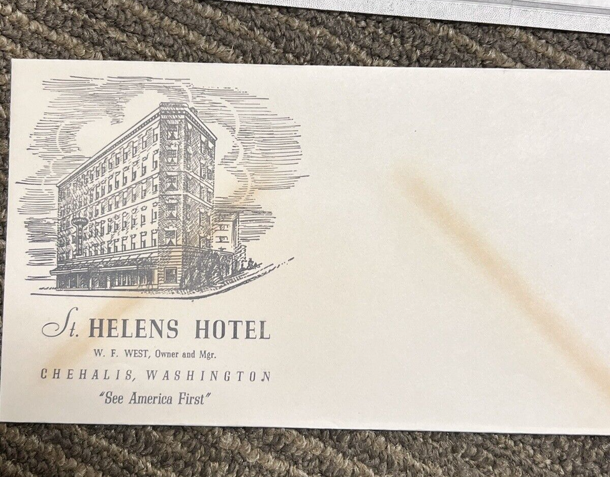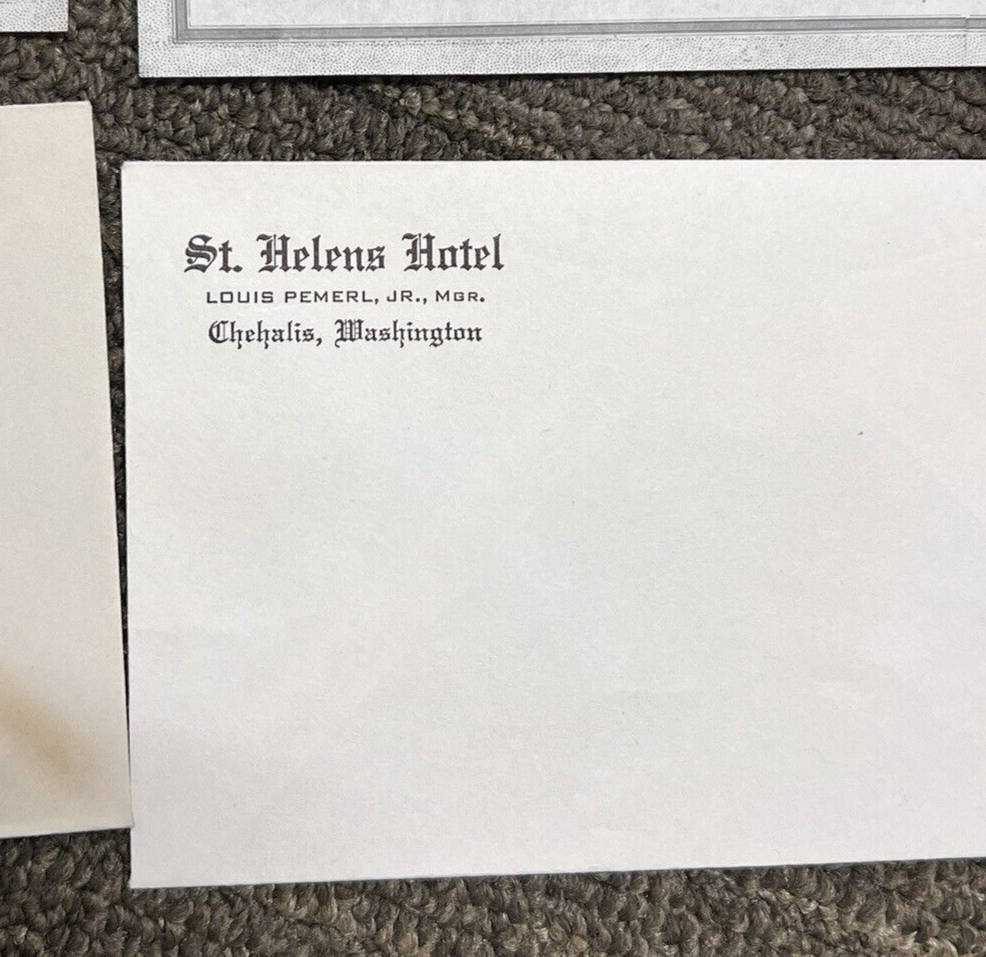 4 PC Vintage St Helens Hotel Chehalis Washington Stationery and Envelopes Some yellowing to one envelope but otherwise nice