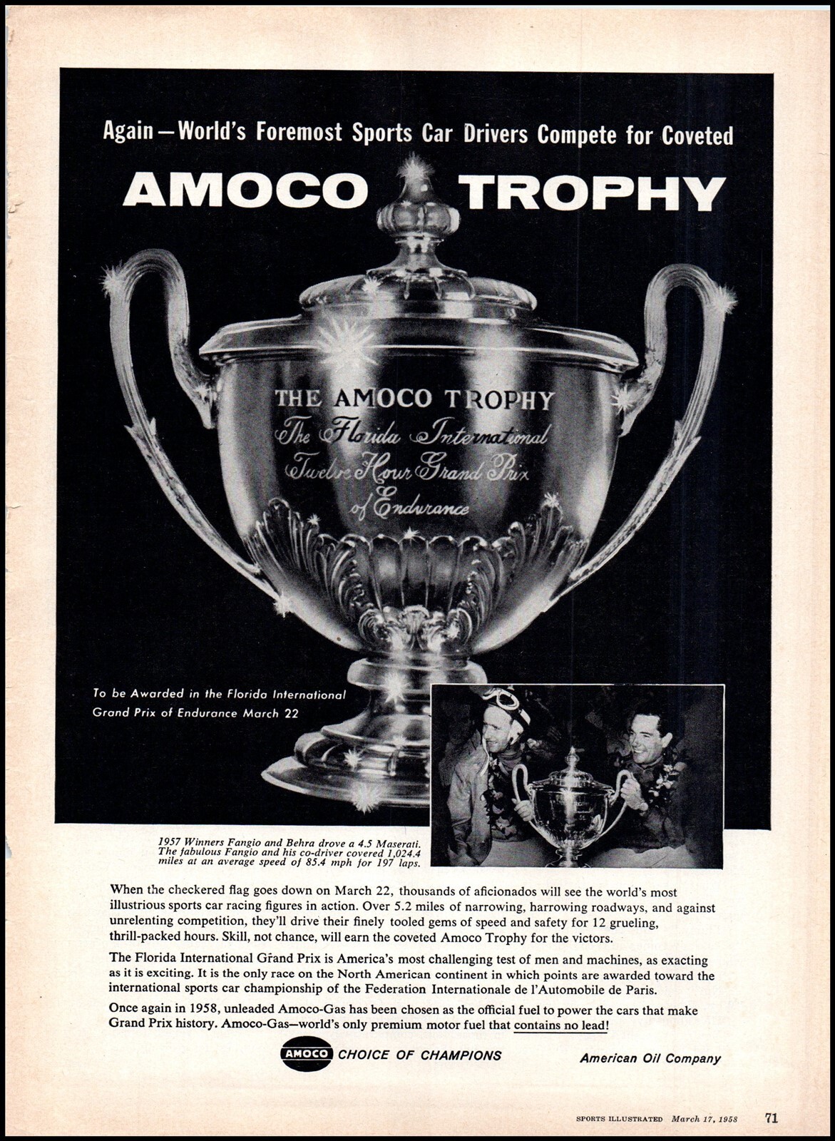 1958 Amoco Gas PRINT AD AMOCO Trophy Florida International Grand Prix BX3