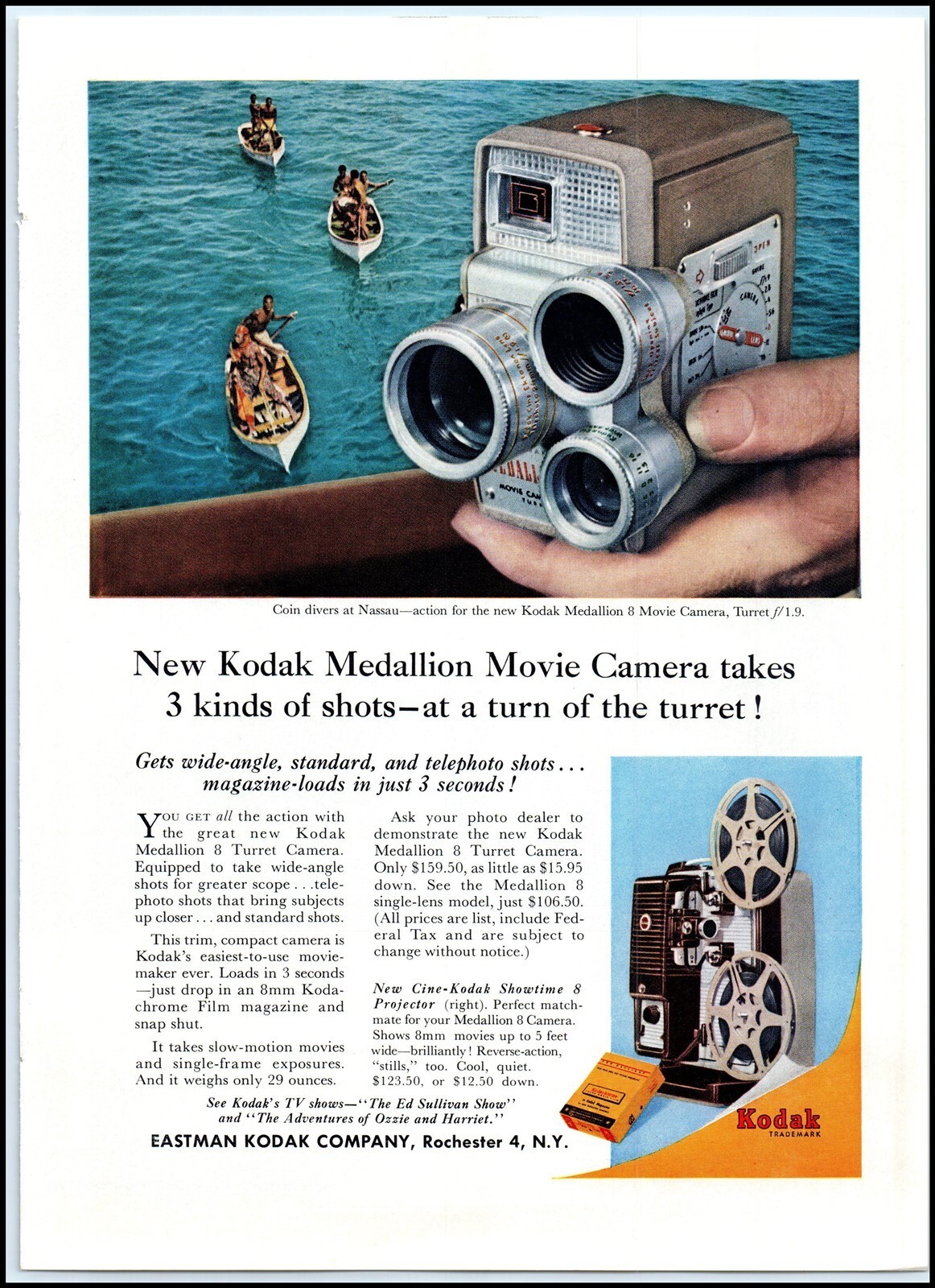 1950s Kodak Medallion 8 Movie Camera with Turret PRINT AD BX4