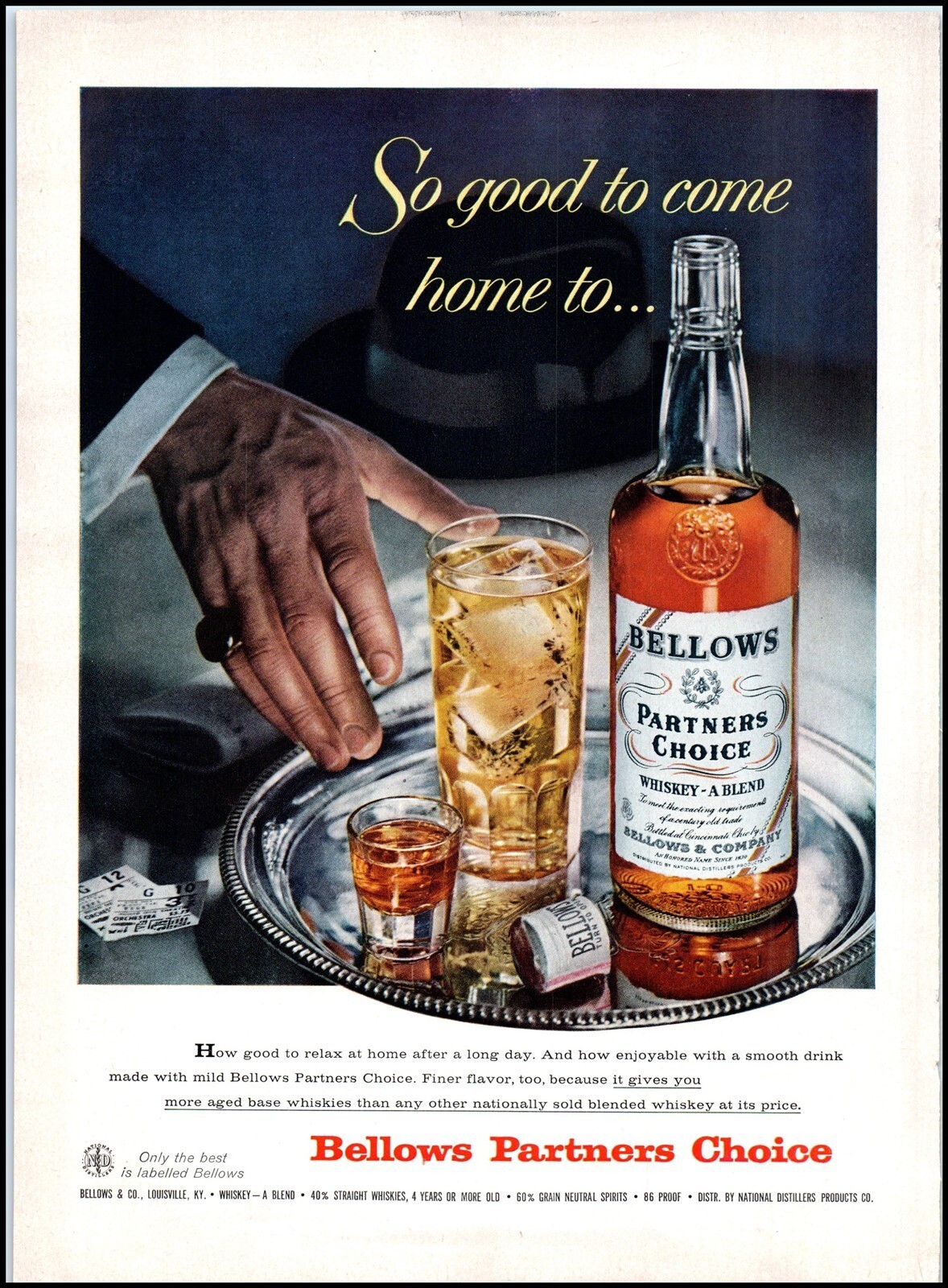 1950s Bellows Partners Choice Blended Whiskey PRINT AD "Whiskey A Blend" BX1