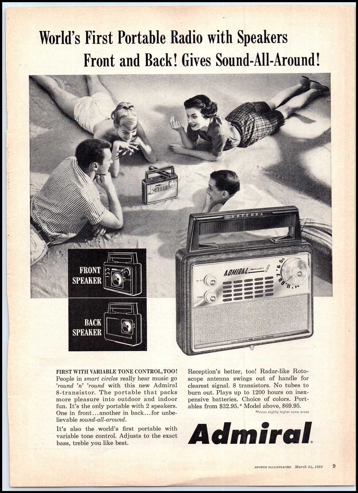 1958 Admiral Radio PRINT AD World's First Portable Radio With Speakers BX4