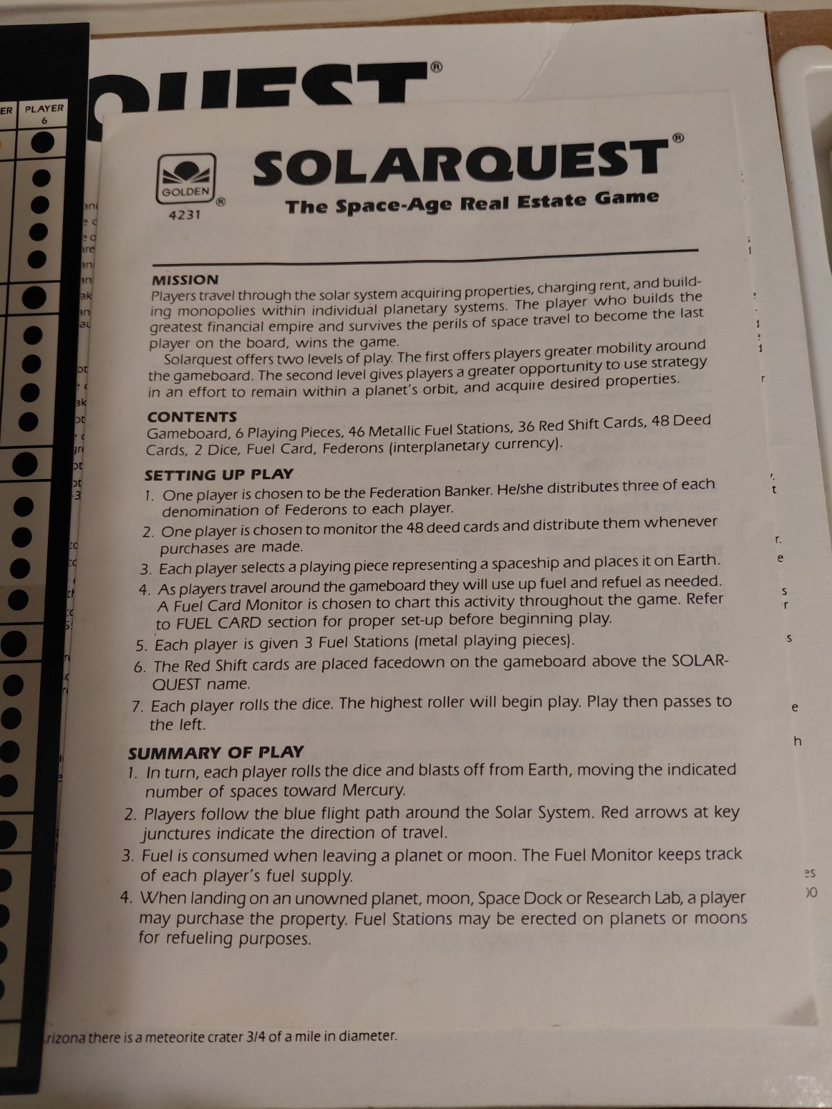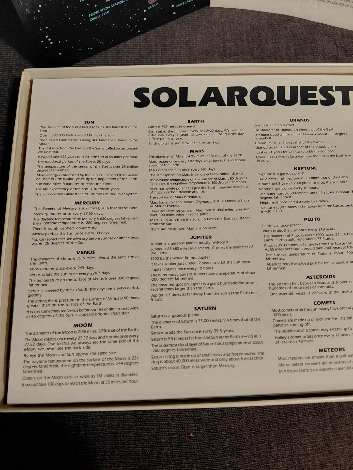 Vintage 1986 SolarQuest The Space Age Real Estate Board Game
