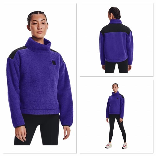 Women's UA Under Armour Sherpa Fleece Mock Neck Jacket Pullover Blue / Black Size XL NWT.