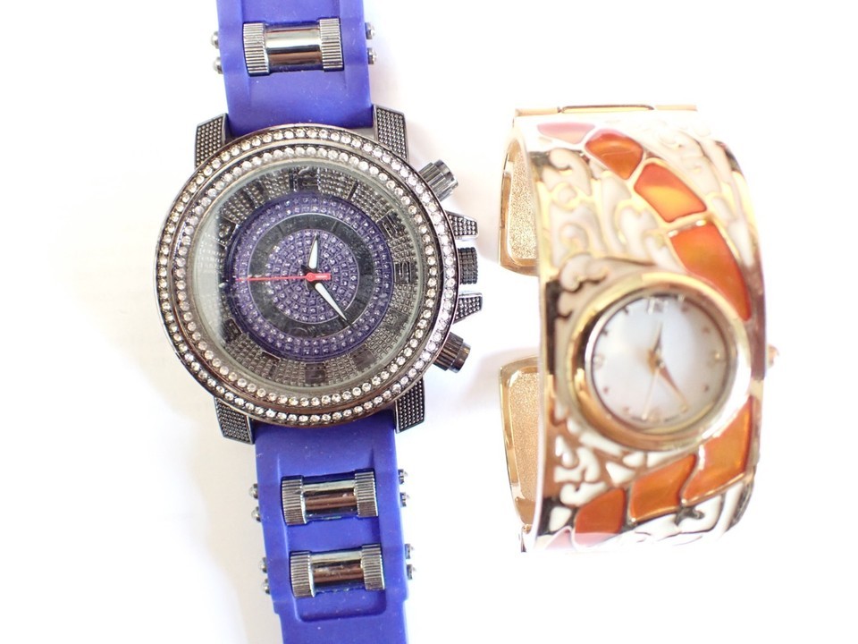 The Accutime Unbranded Bracelet Quartz Unisex Wristwatches are stylish and casual timepieces suitable for both men and women. With a round watch shape and analog display, these watches feature a central second and 12-hour dial. The quartz movement ensures accurate timekeeping, making them a practical and reliable accessory. The bracelet band adds a touch of elegance to the overall design, making these watches a versatile choice for everyday wear. The big dial is about 52 mm and has blue flexible straps and the other one is unbraded, quartz with an attractive bracelet with hinges. Both have new batteries installed in them.