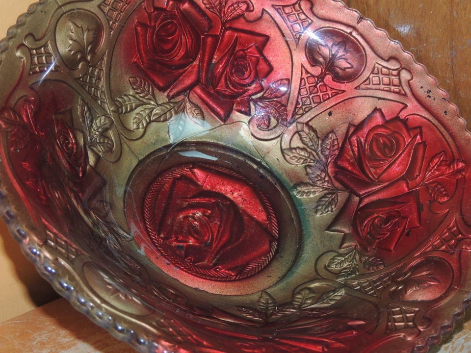 Antique 9" Goofus Glass Bowl Double Rose and similar items