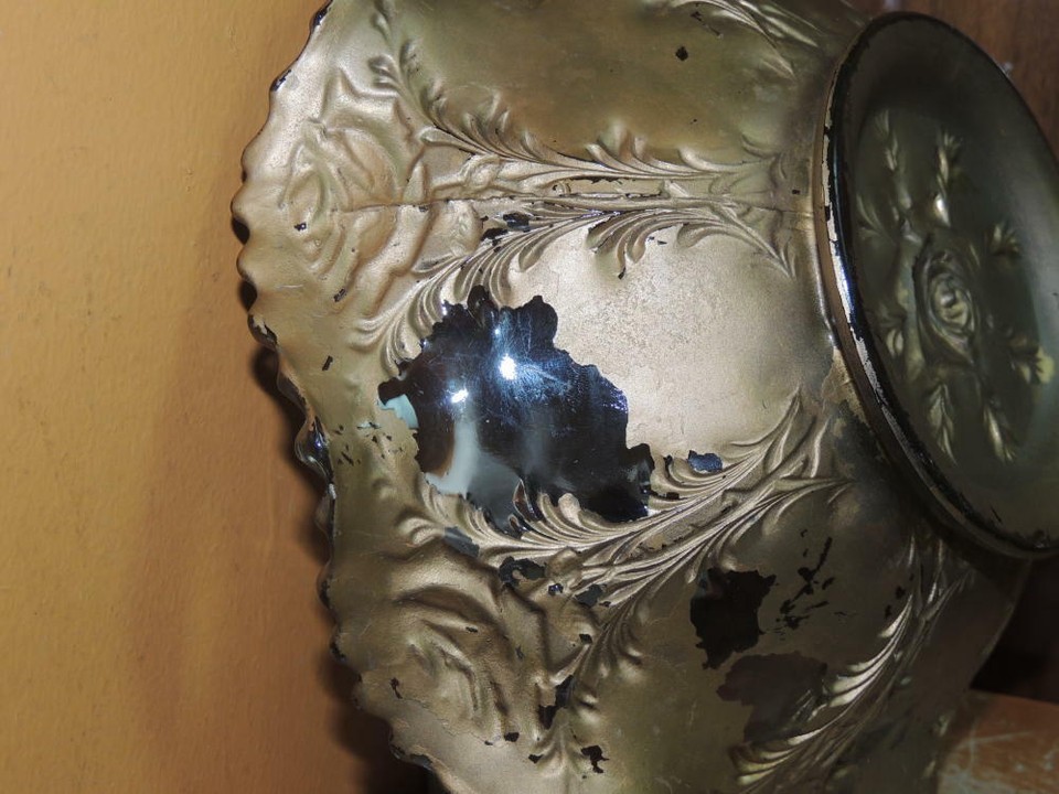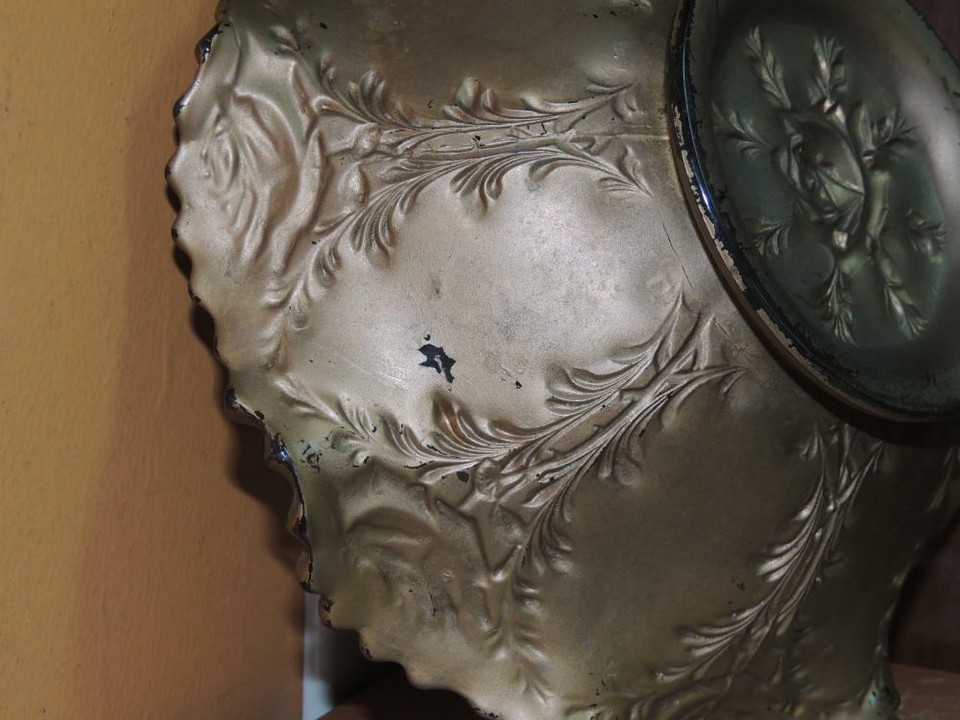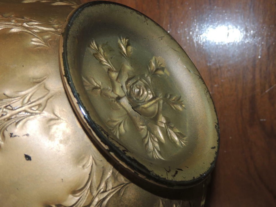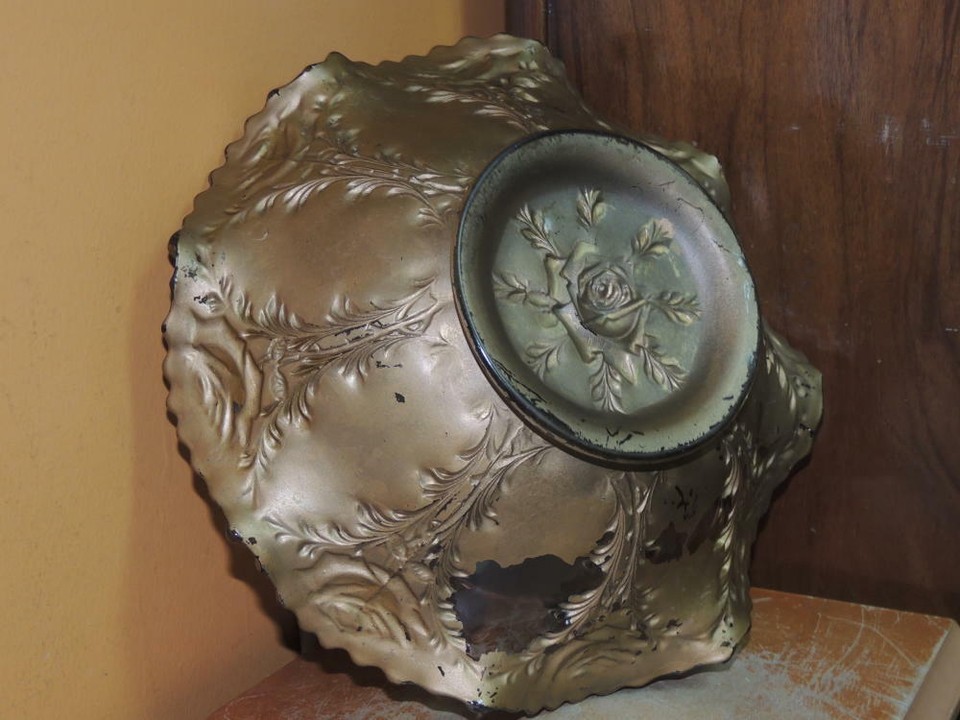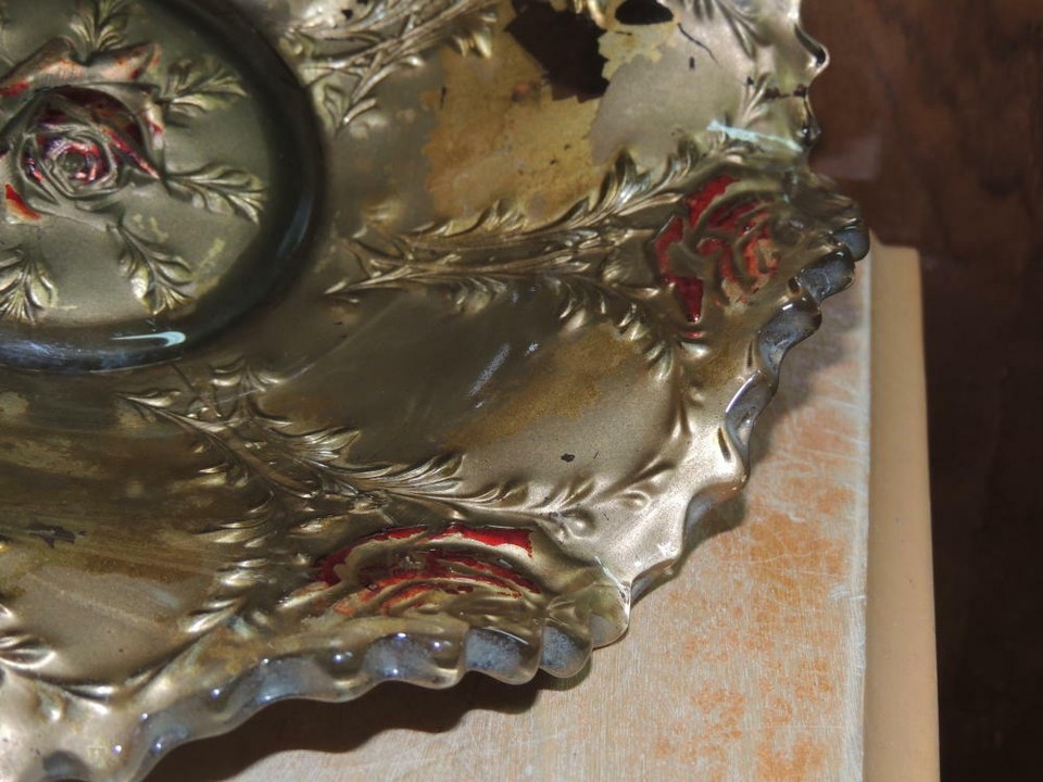Antique 7" Goofus Glass Bowl Belle Rose pattern Gold Red relief embossed EAPG US