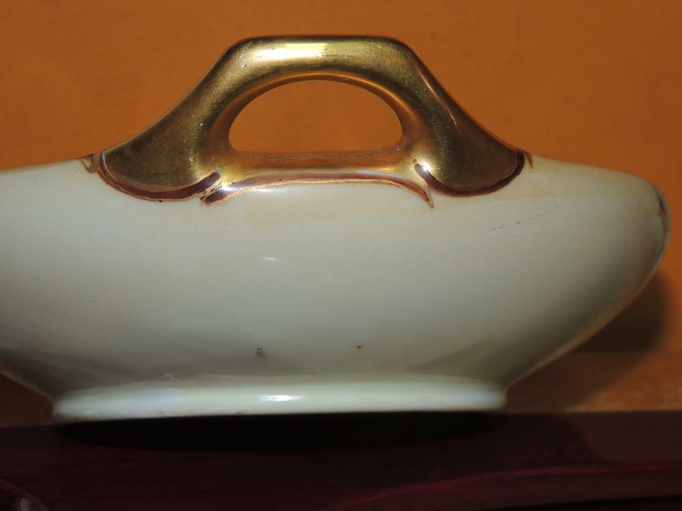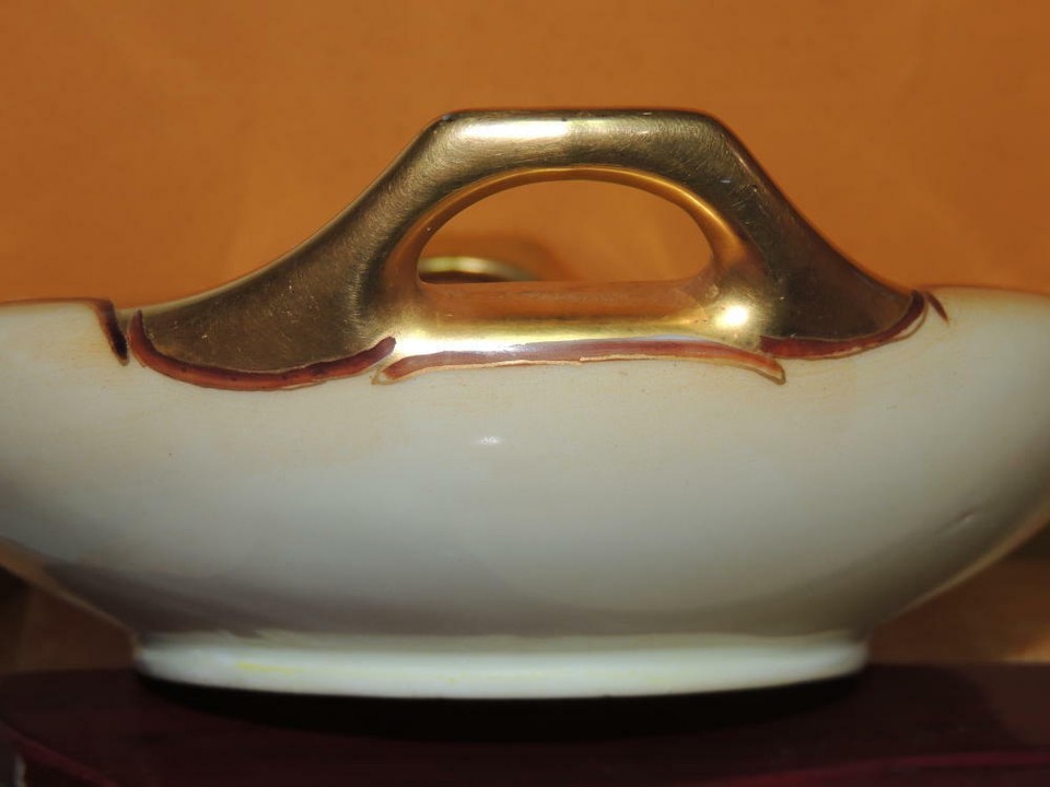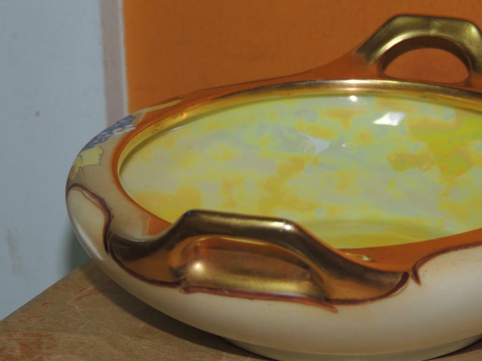 Antique 7.5+" Bowl MZ Austria porcelain handled grape gold edge Kenwood