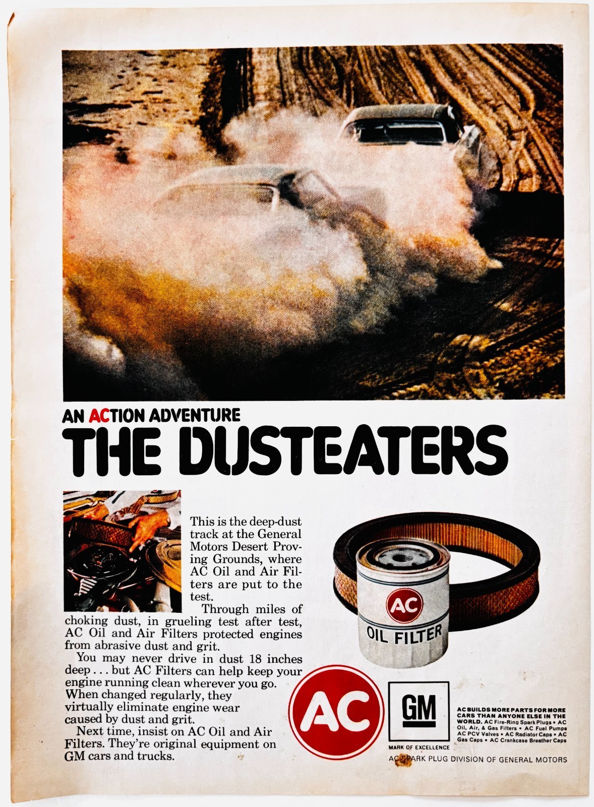 1970 AC Oil Filters Dust Eaters Advertisement Vintage Automobilia GM F15N