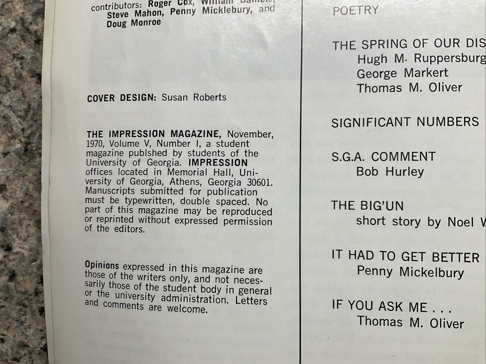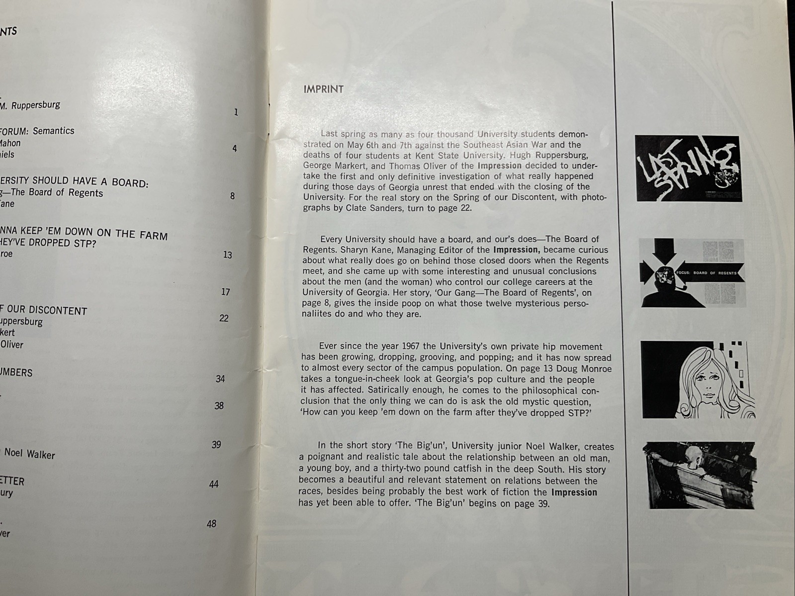 THE IMPRESSION November 1970 UGA University of Georgia Student Magazine ACTIVISM