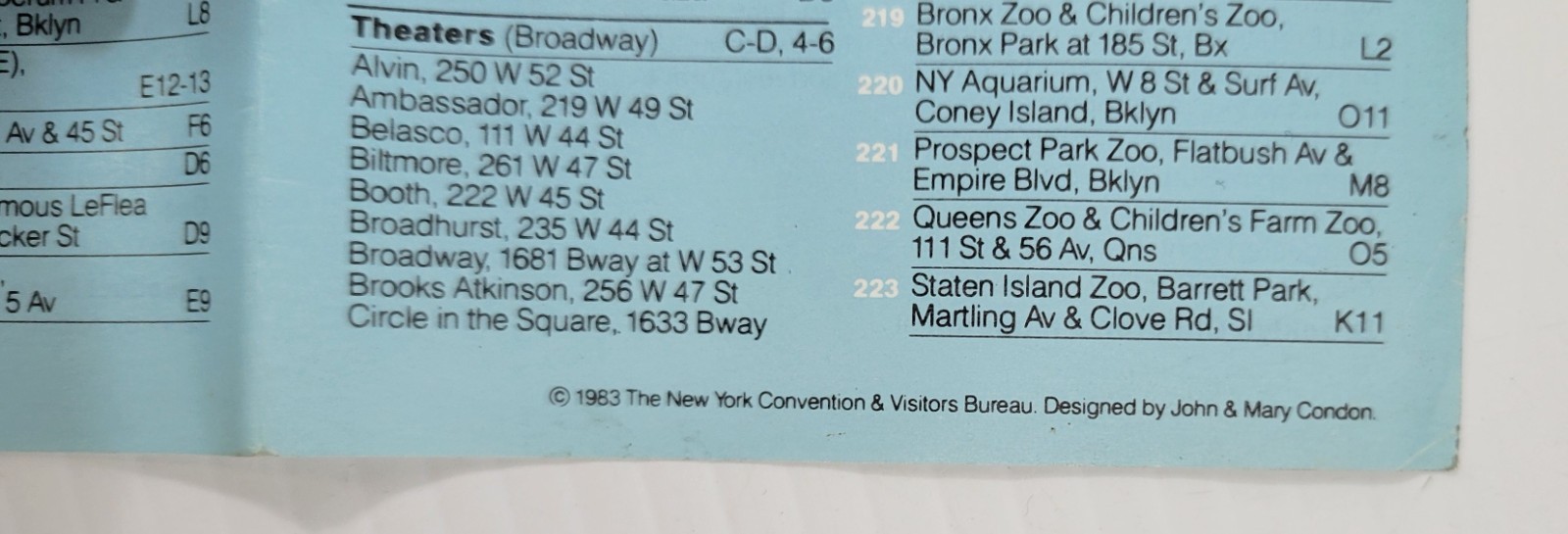 *L2) Vintage 1983 I Love New York City Travel Guide Foldable Pocket Map