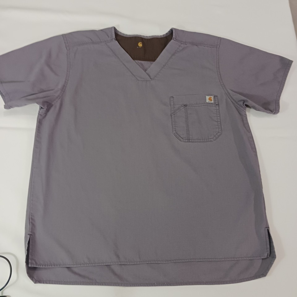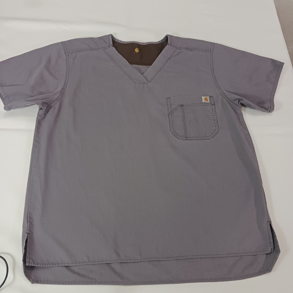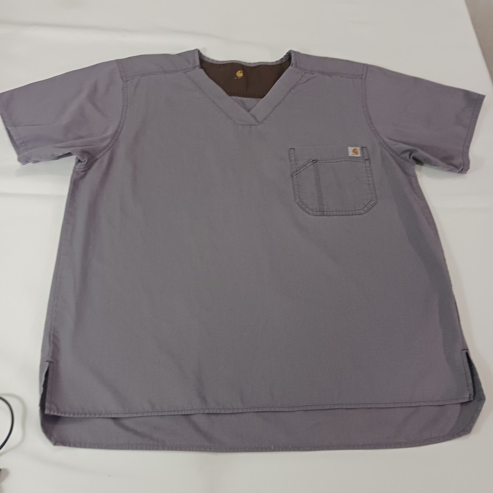 Carhartt Women's Gray Scrub Top V-Neck Two Pocket Workwear Chest Size 49"