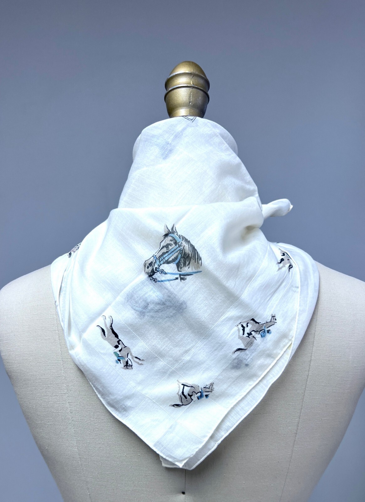 Vintage Equestrian Horse Racing Mens Hankie Bridle Horses Print 1940s-50s 20"
