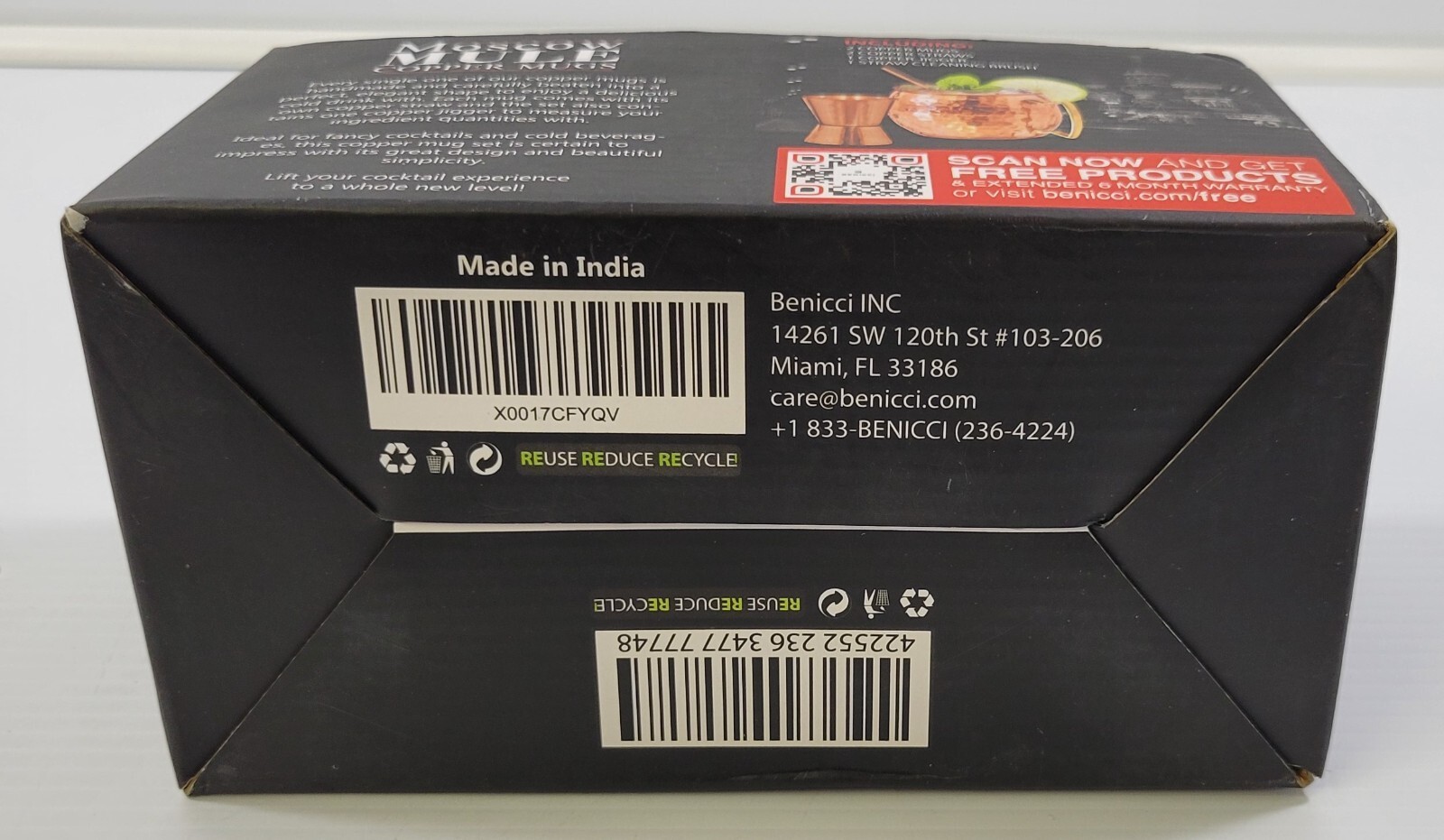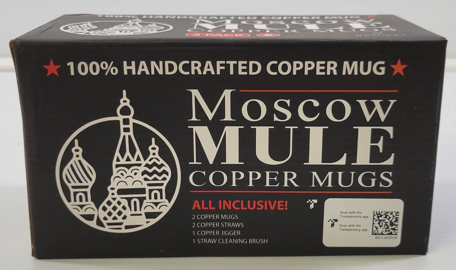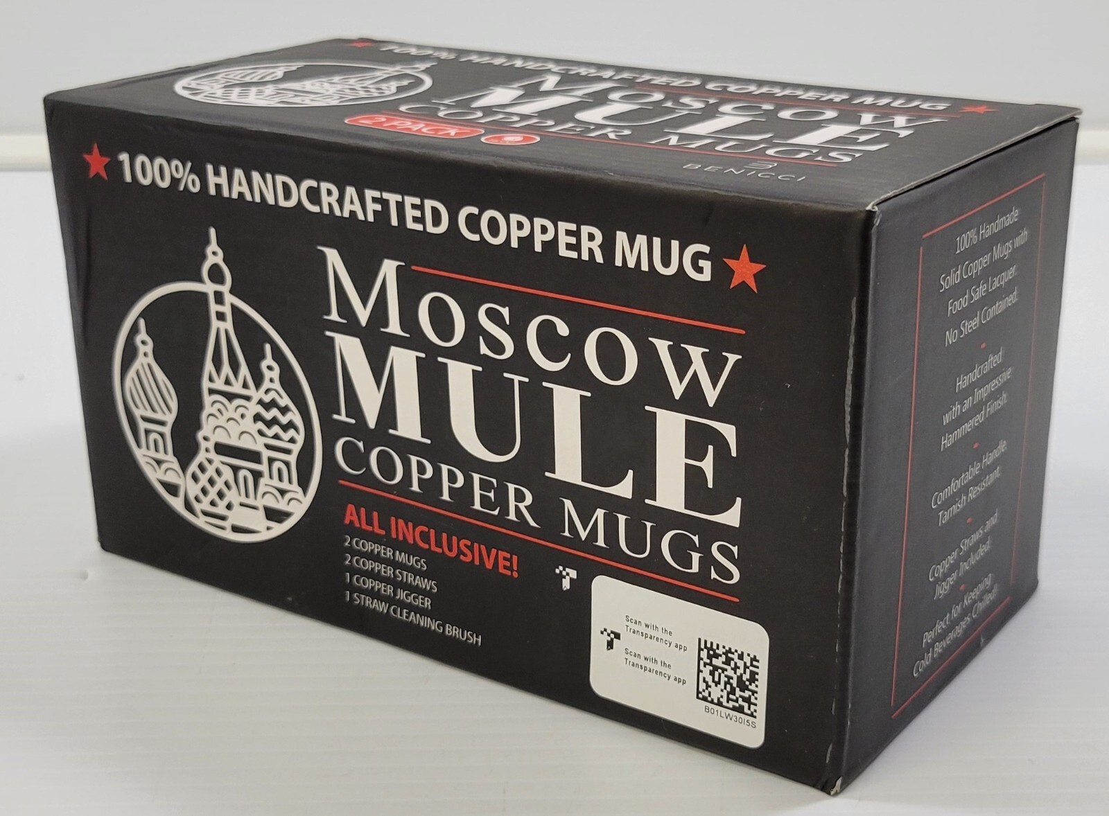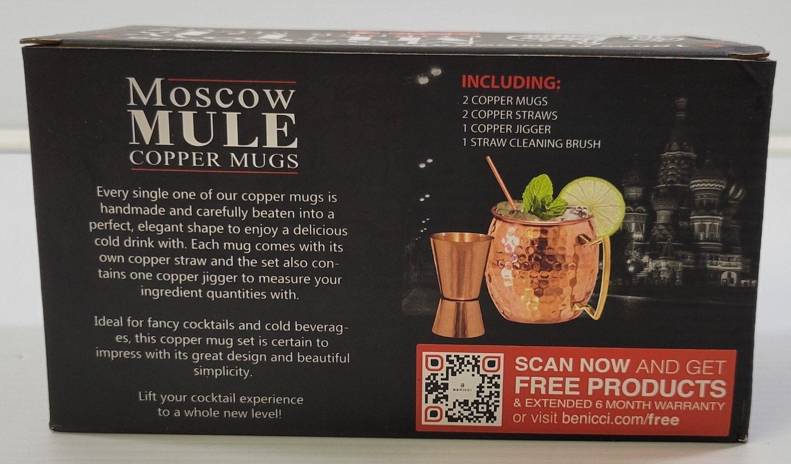 *L) Benicci Moscow Mule 2 Pack Copper Mugs Straws Jigger