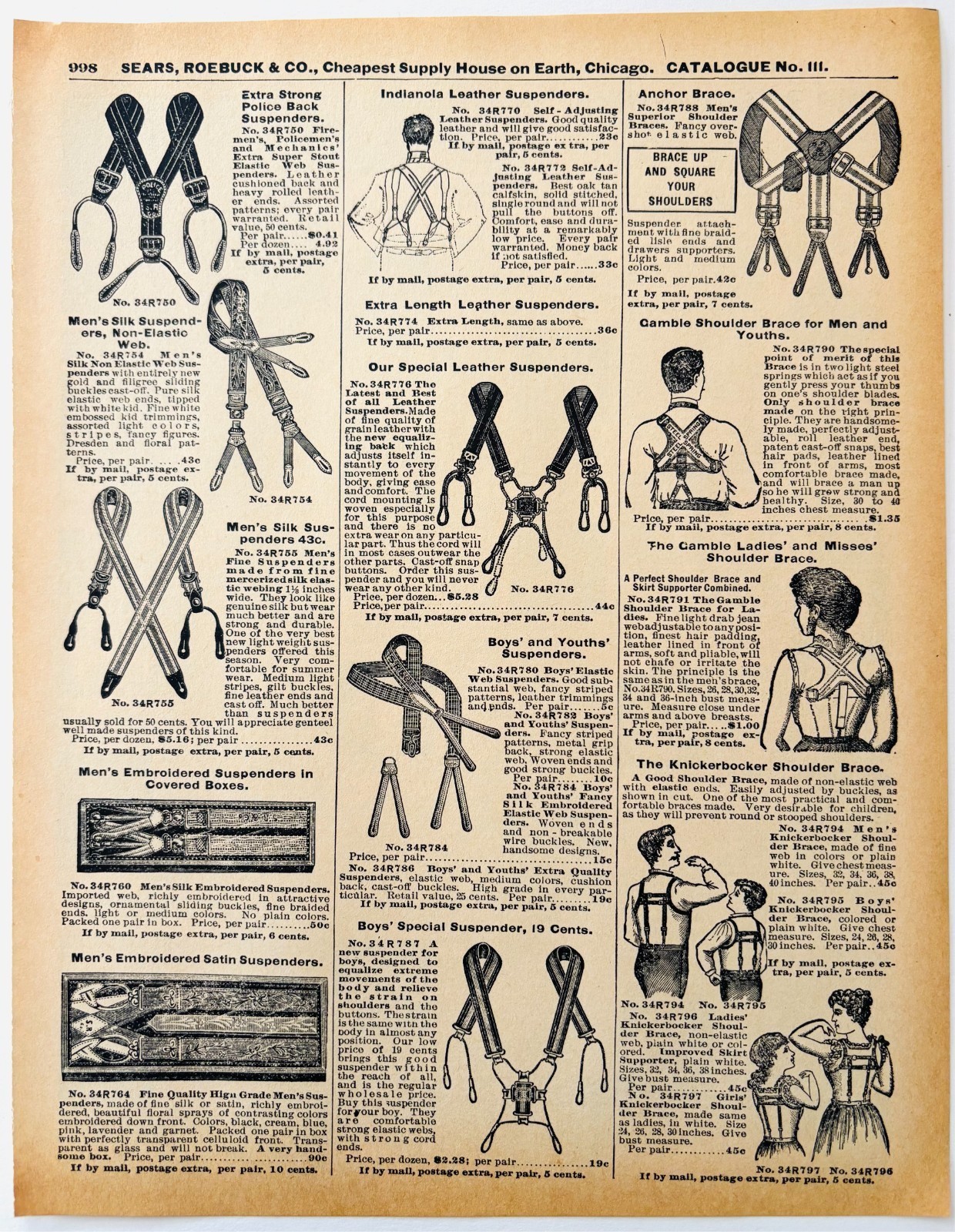 1901 Suspenders Shoulder Braces Reproduction Advertisement Sears Fashion DWV12C