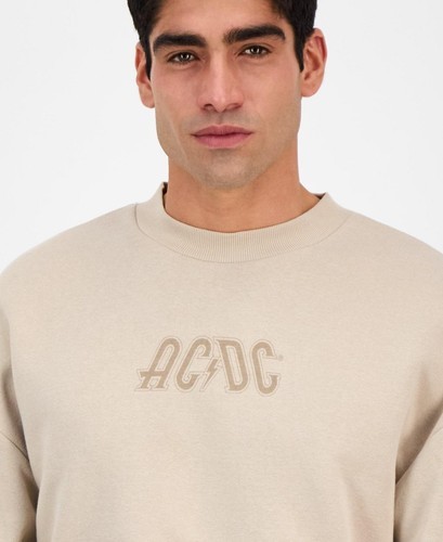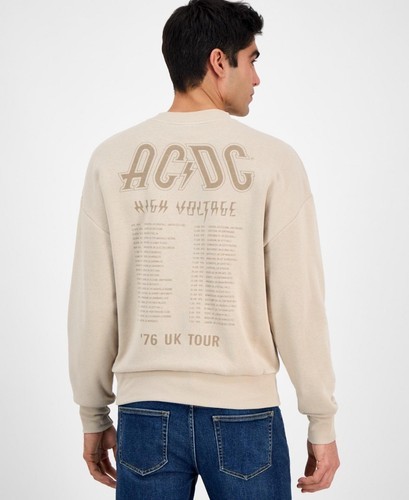Tai Apparel Men's Ac/Dc Relaxed Fit Crewneck Graphic Sweatshirt Beige-XL