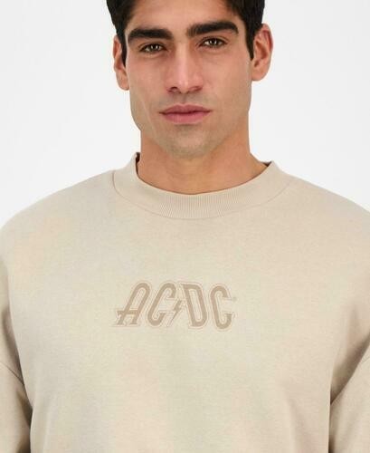 Tai Apparel Men's Ac/Dc Relaxed Fit Crewneck Graphic Sweatshirt Beige-Large