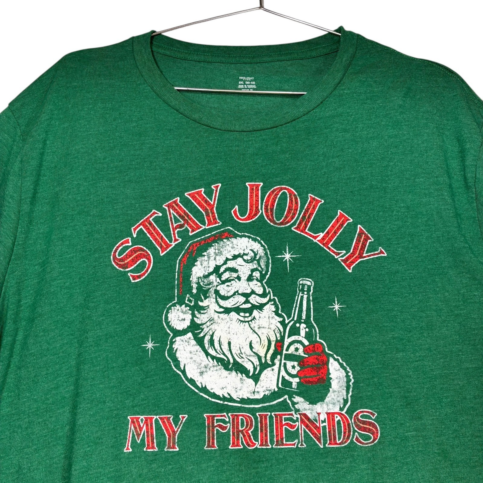Stay Jolly My Friends - Santa Claus holding a beer - mens green t-shirt size 2XL