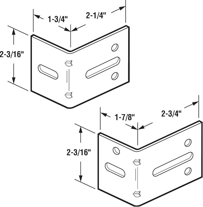 Includes two brackets: one with 1-3/4" x 2-1/4" legs and one with 1-7/8" x 2-3/4" legs