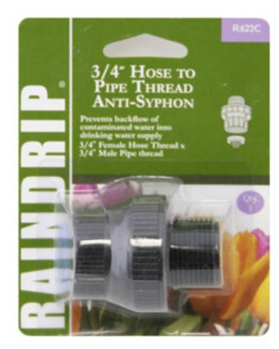 Comes with one 3/4 in. FHT X 3/4 in. MPT Anti-Siphon Backflow Preventer; Raindrip stands by their product and gives a 1-year, 100% satisfaction guarantee. If your product breaks, Raindrip will send you a new one for free, just pay shipping and handling