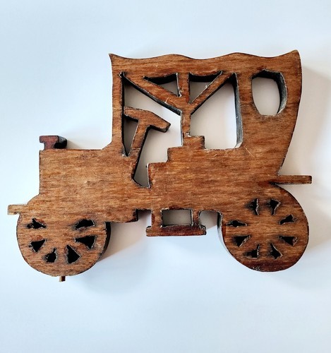 Antique Wood Handmade Coach Car Automobile Carved Collectible E2