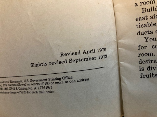 1973 Storing Vegetables Fruits Basements Cellars Outbuilding Pits Bulletin 119 Condition as shown. Cover wear as shown. Please refer to images.