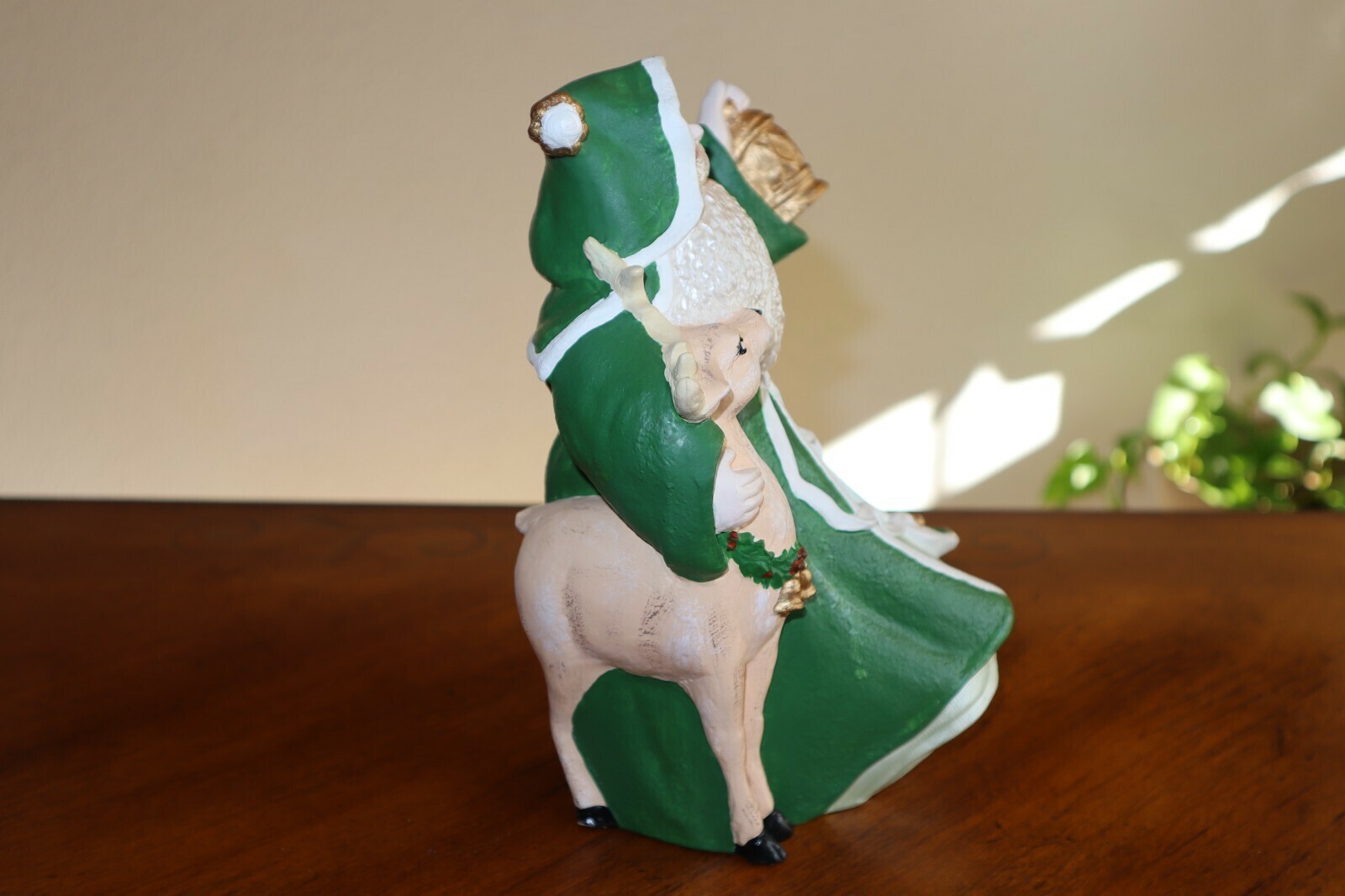 Vintage 1992 Deer Lantern Figurine Santa Claus Father Christmas Painted Mold 9"