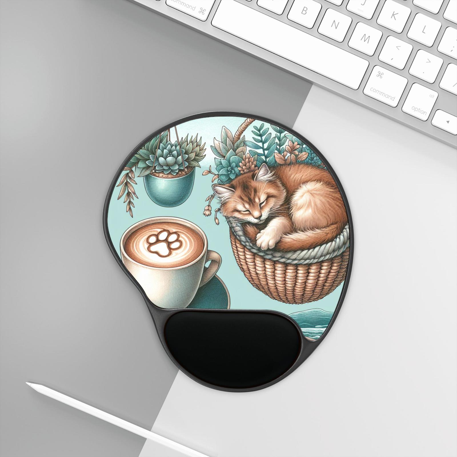 Elevate your workspace with this stylish Mouse Pad with Wrist Rest. Featuring a charming design of a cozy cat surrounded by succulents and a coffee cup, this mouse pad brings warmth and personality to any office or home setup. The vibrant colors will brighten up your desk, making it a delightful addition for cat lovers and anyone needing a touch of comfort while they work or play. Perfect for students, graphic designers, or remote workers, this mouse pad adds both style and functionality. It's ideal for gifting during holidays, birthdays, or as a thoughtful gesture for a friend on any occasion. Embrace both beauty and ergonomics with this essential desktop accessory!