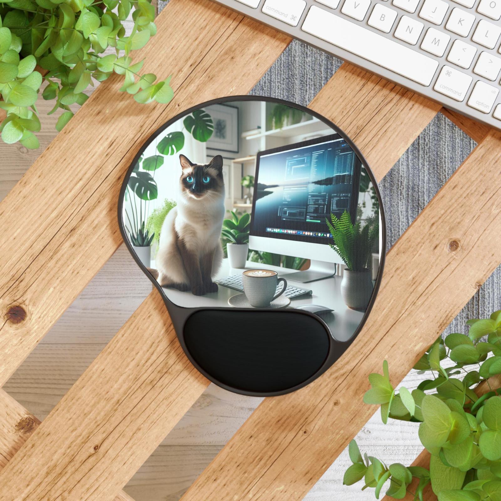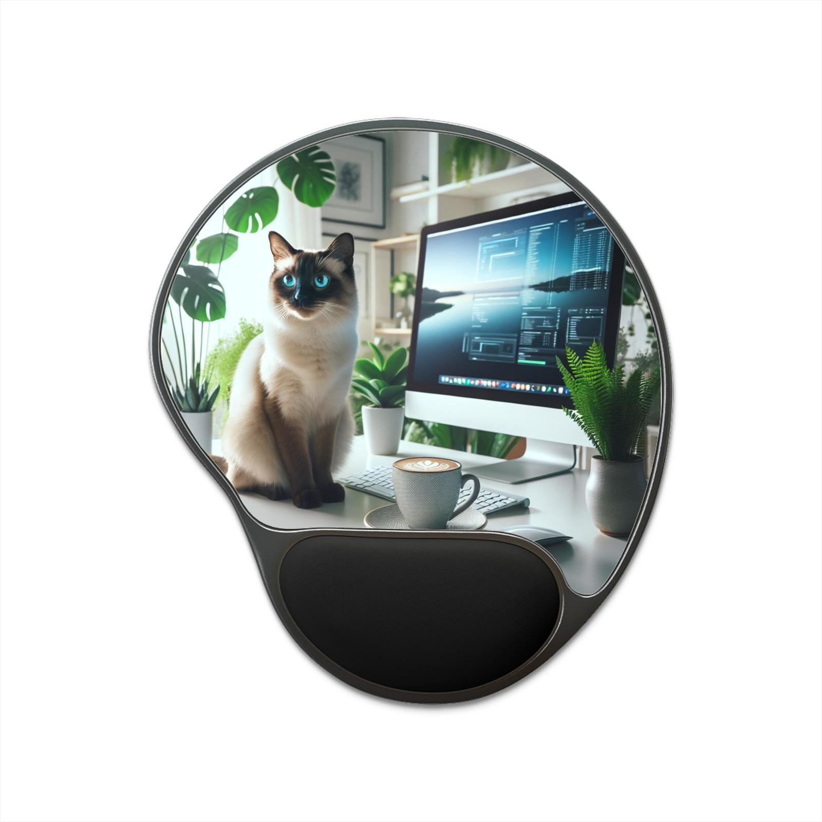 Stylish Cat Themed Mouse Pad with Wrist Rest, Gaming Desk Accessory, Office Deco