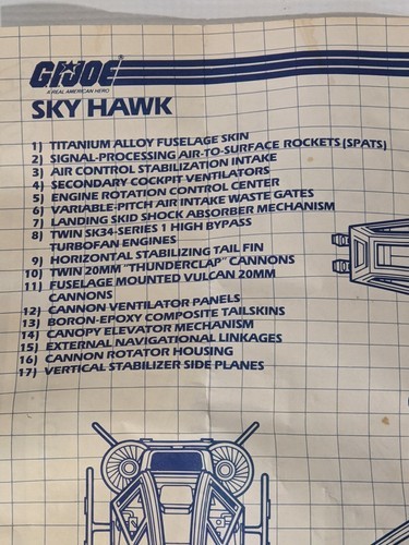 In vendita e un'istruzione di progetti di veicoli GI Joe Joe Hawk vintage usati del 1985.