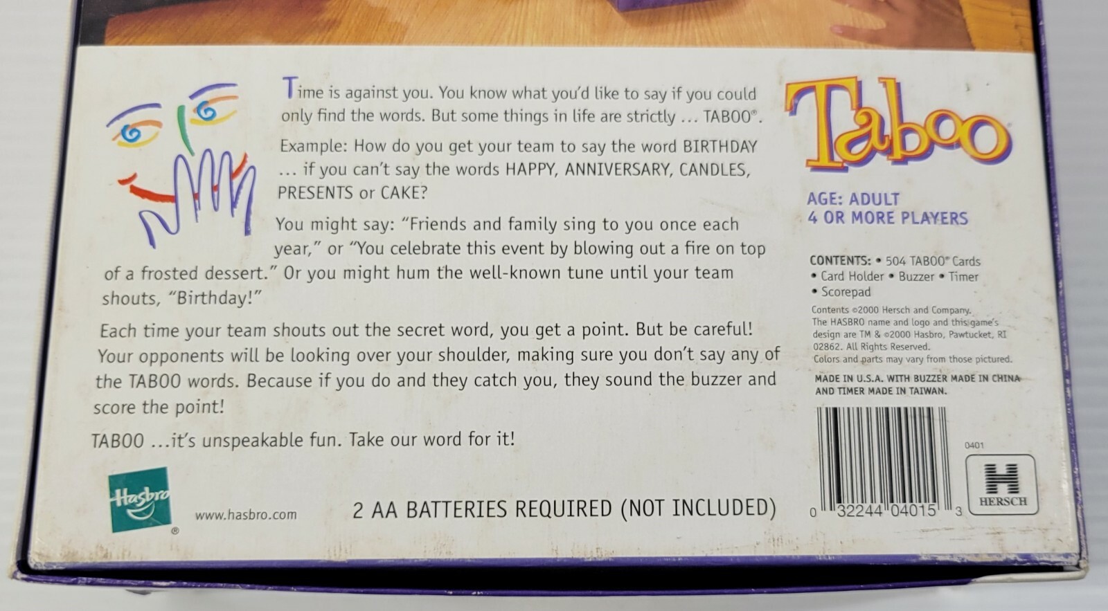*MM) Taboo Hersch 2000 Hasbro Board Card Game