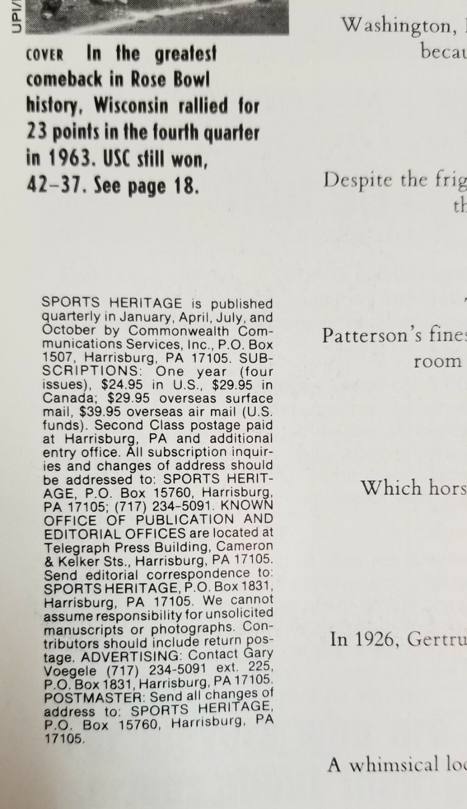Spring 1988 Sports Heritage Magazine Volume II Number I