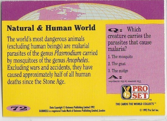 M) 1992 Pro Set Facts and Feats Guinness Trading Card #72 Malarial Parasites