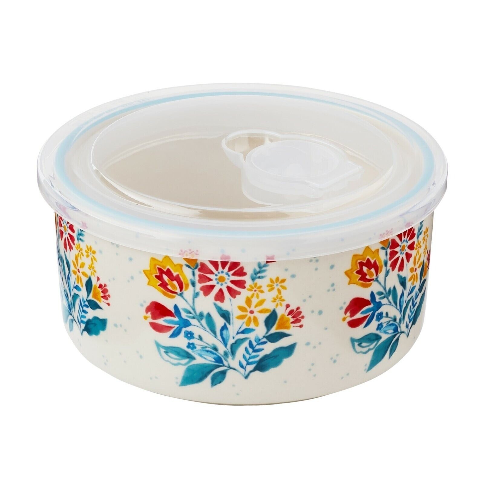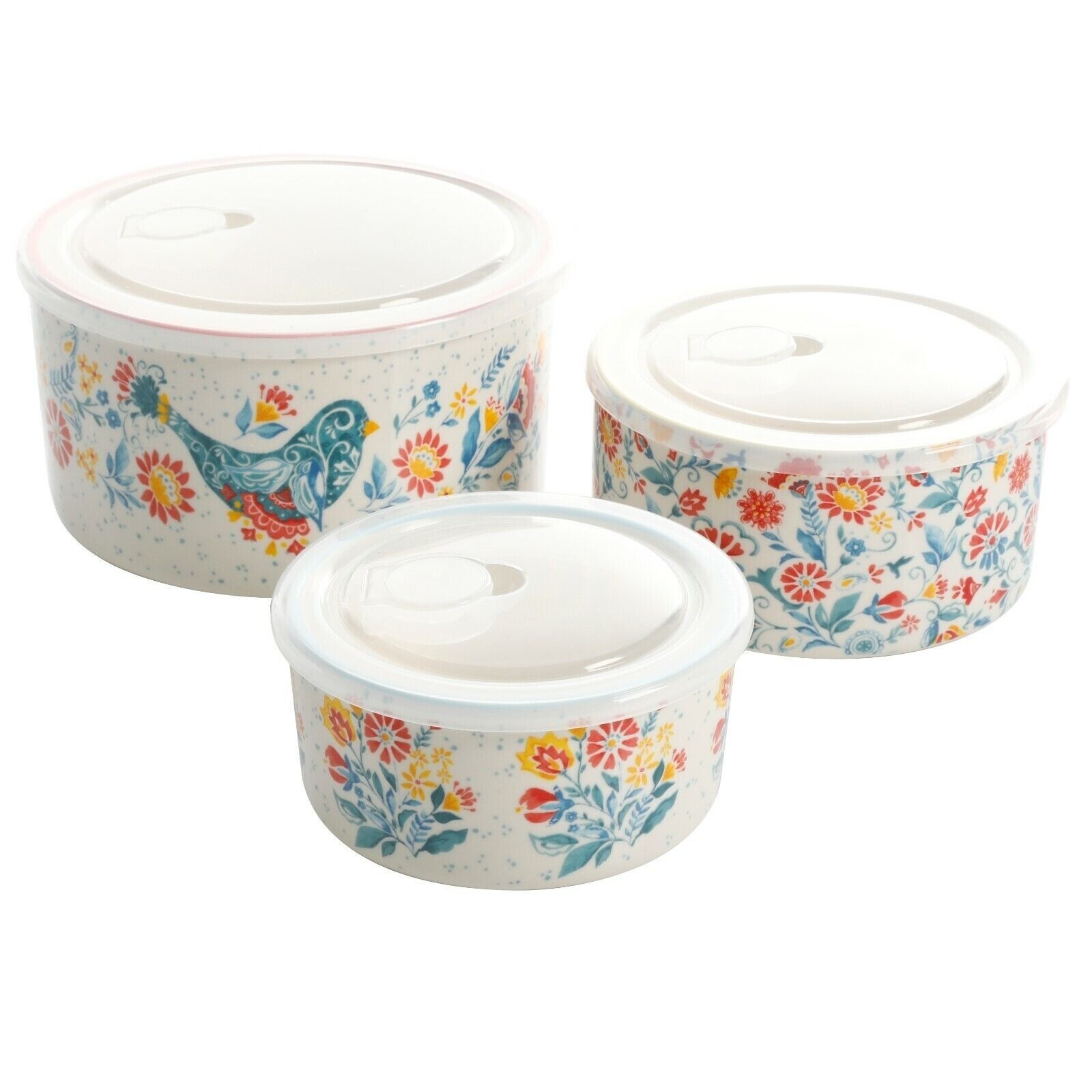 Pioneer Woman Mazie Round Nesting Bowls Ceramic 6-Pc Lids Farmhouse Kitchen NEW