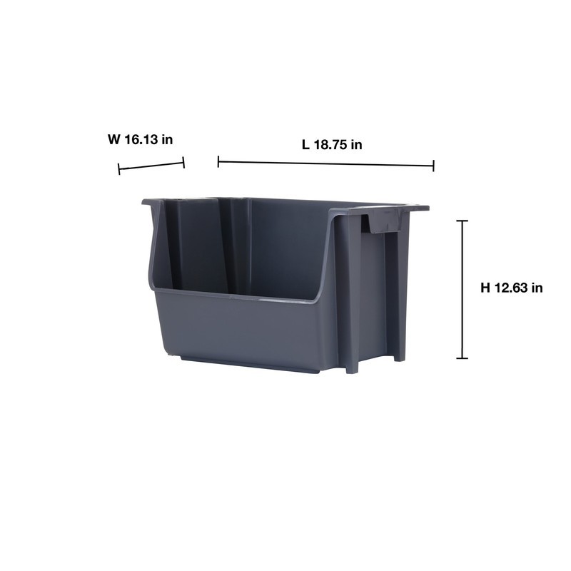 Large Nesting Stack Storage Bin, All, Plastic, Gray