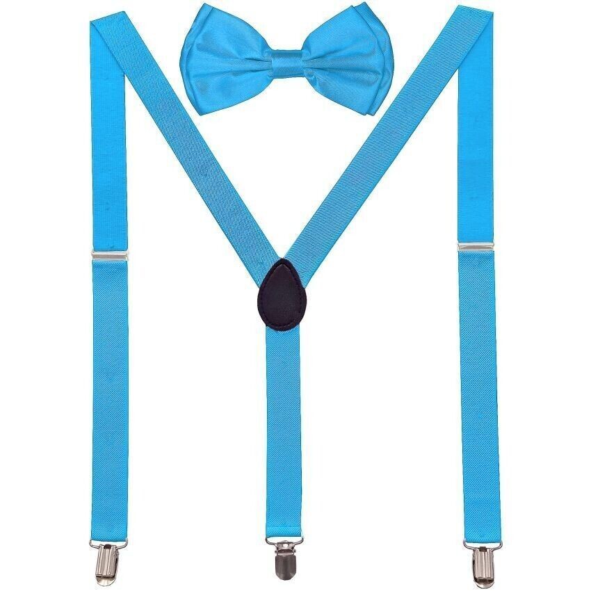 Men AB Elastic Band Light Blue Suspender With Maching Polyester Bowtie