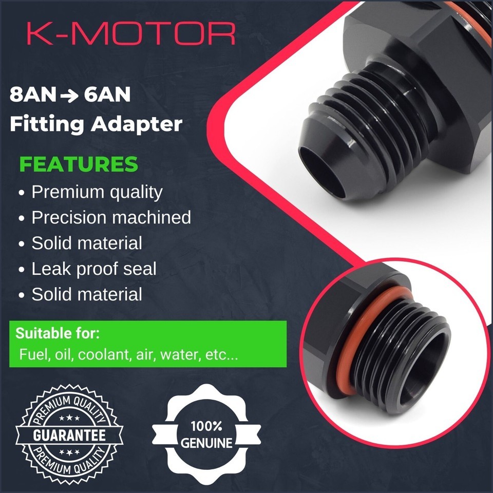 8AN to 6AN Fitting Reducer - ORB Straight Male Adapter (K-MOTOR)