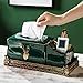 Transform your living space with this luxury ceramic tissue box and remote organizer, featuring an exquisite gold deer head design that exudes sophistication. This European-style decorative piece brilliantly combines functionality with elegant aesthetics, providing convenient storage for tissues while offering a separate compartment for remotes, small accessories, or toiletries. The high-gloss crackled ceramic finish with ornate metallic accents creates a stunning visual focal point on coffee tables, vanities, or office desks. Measuring 12.6 inches long, 5.7 inches wide, and 5.5 inches high, this organizer accommodates standard tissue packs while its additional storage space helps maintain a clutter-free environment. The smooth ceramic surface requires minimal maintenance?simply wipe clean to preserve its lustrous appearance. Perfect for those who appreciate refined design elements and organized living spaces, this sophisticated tissue box organizer makes a thoughtful gift for any stylish home.