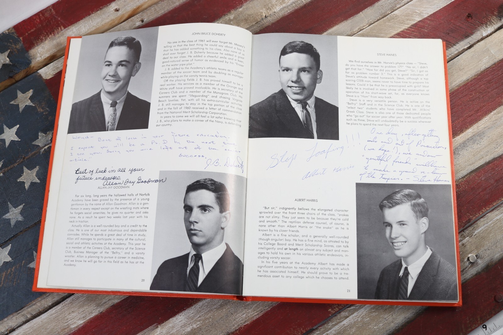 The Vintage Virginia 1961 Norfolk Academy Yearbook is a collectible item that holds historical significance. This yearbook, signed by a former student, captures a snapshot of education in Virginia during the 1960s. With its vibrant orange and white pages, this book serves as a timeless reminder of the tradition and excellence of Norfolk Academy. It is a unique piece of memorabilia that would be cherished by collectors and alumni alike.