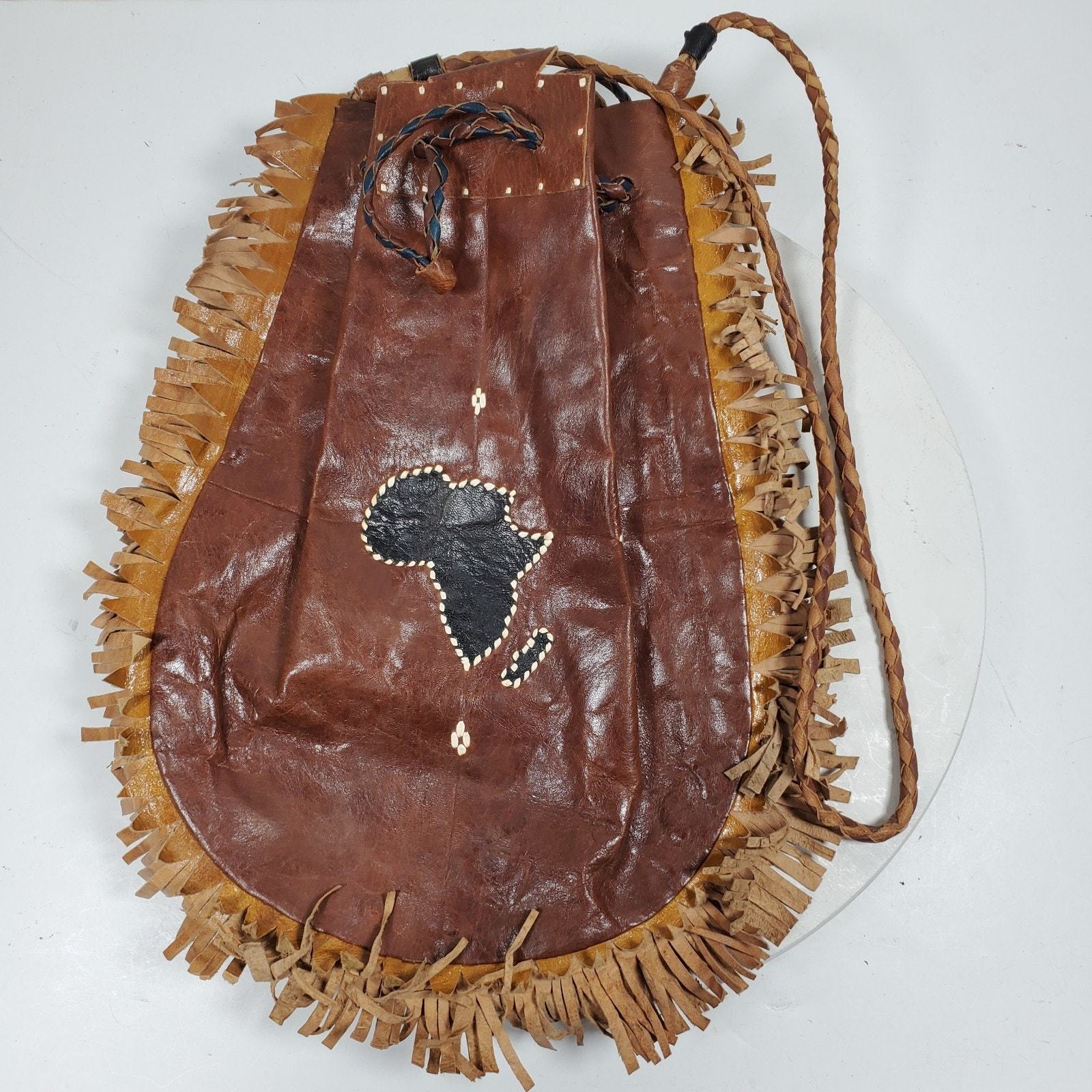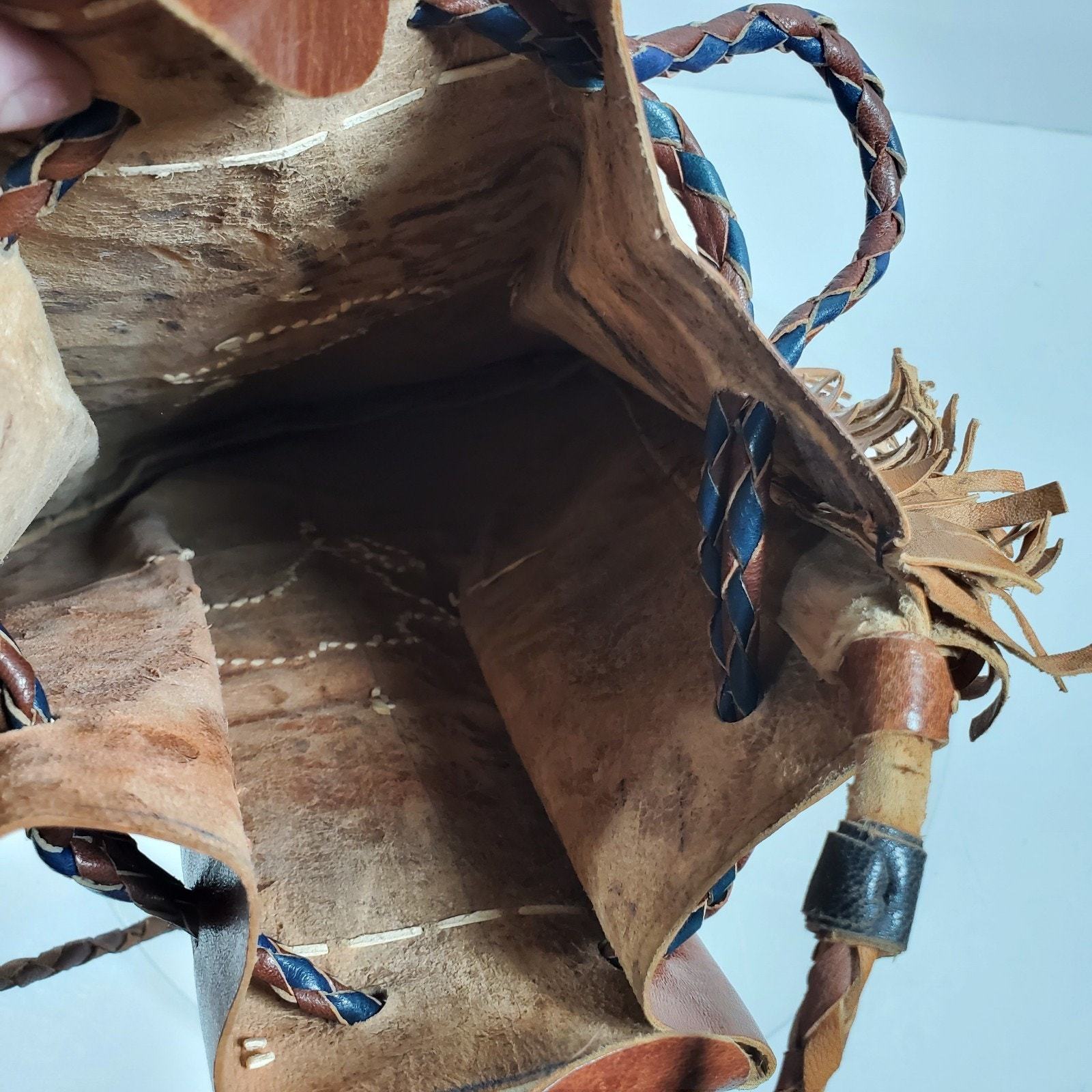 Vintage Hippy Leather Fringe Bucket Tie Purse Handcrafted