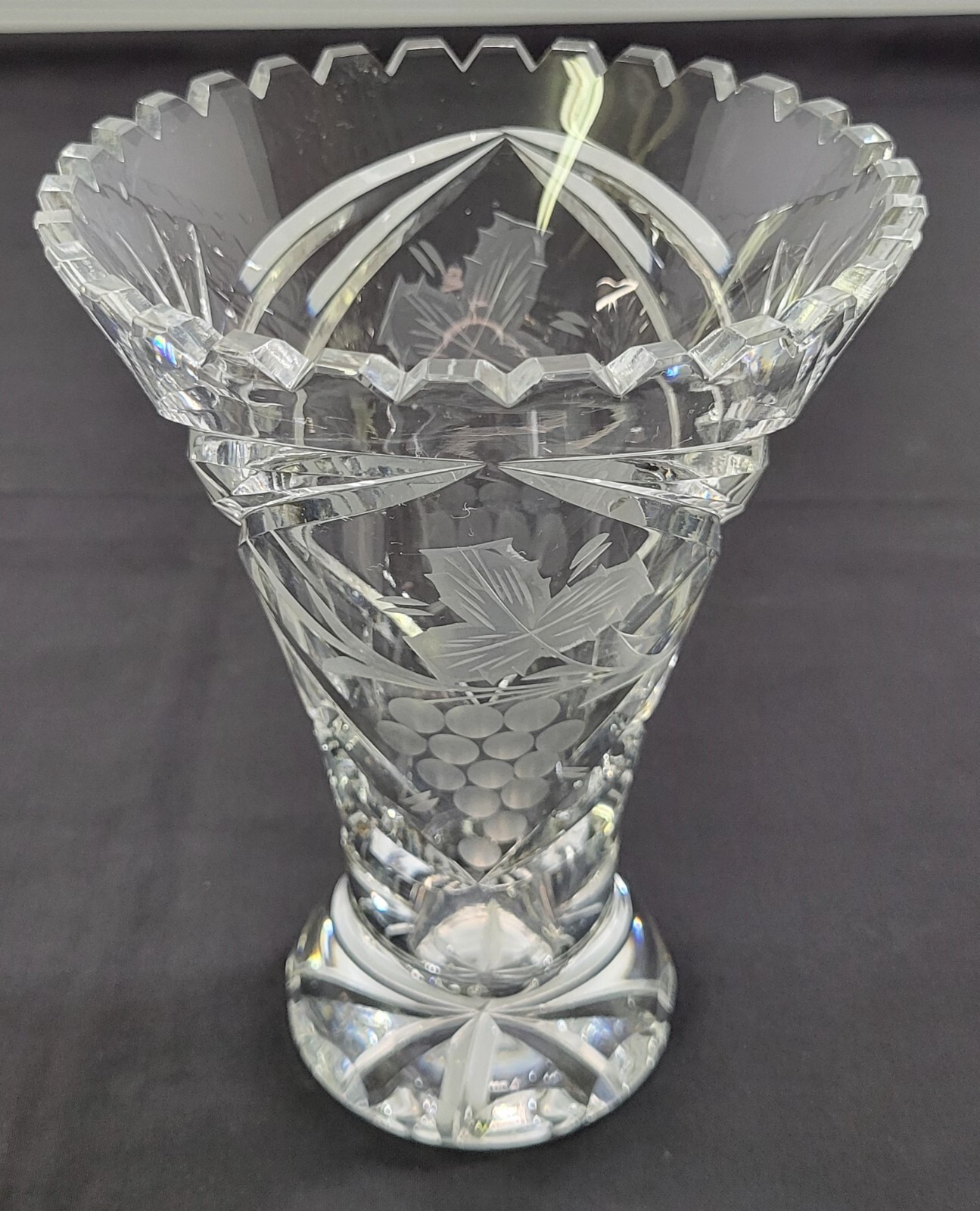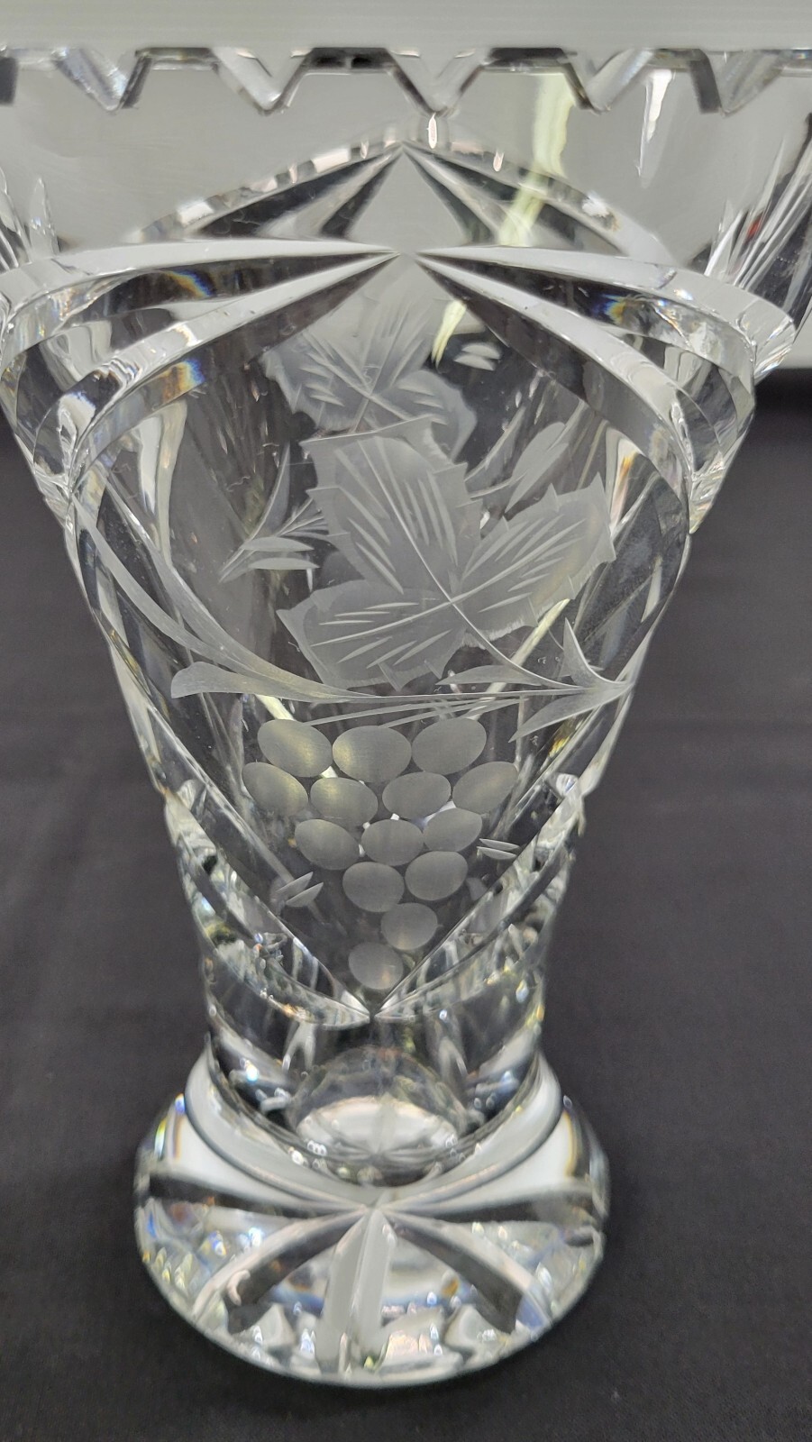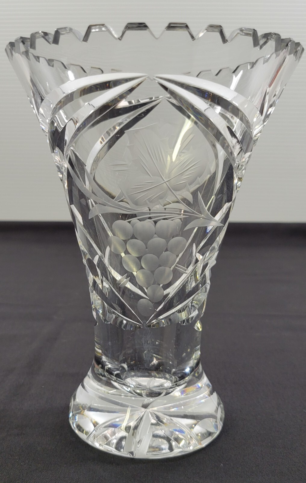 N) Vintage Lausitzer Glas Lead Crystal Etched Hand Cut Glass Vase Germany